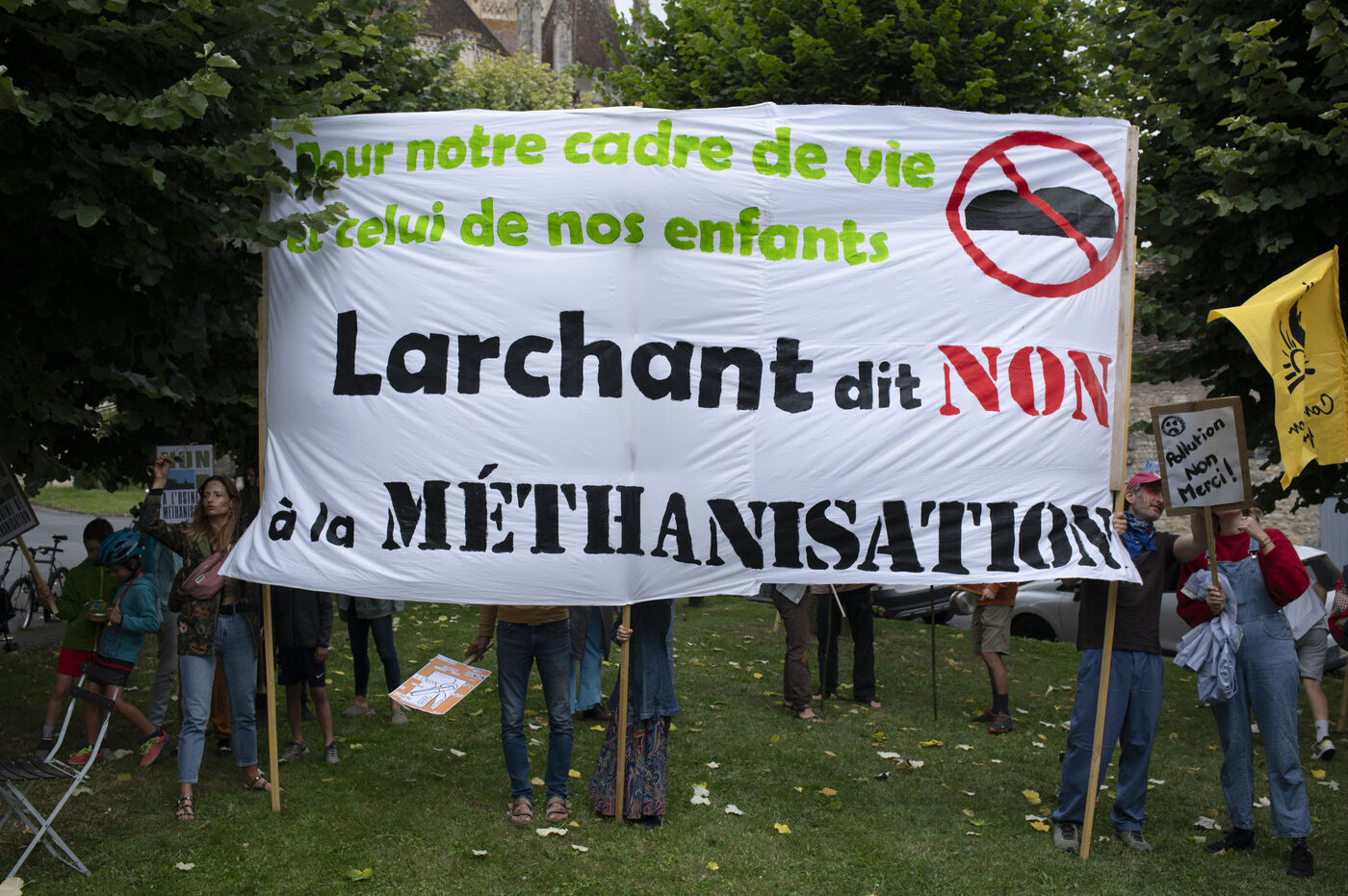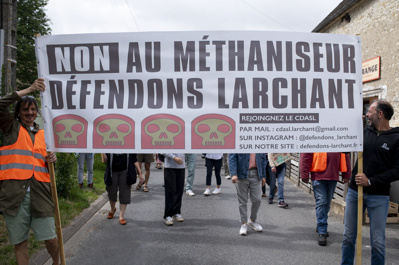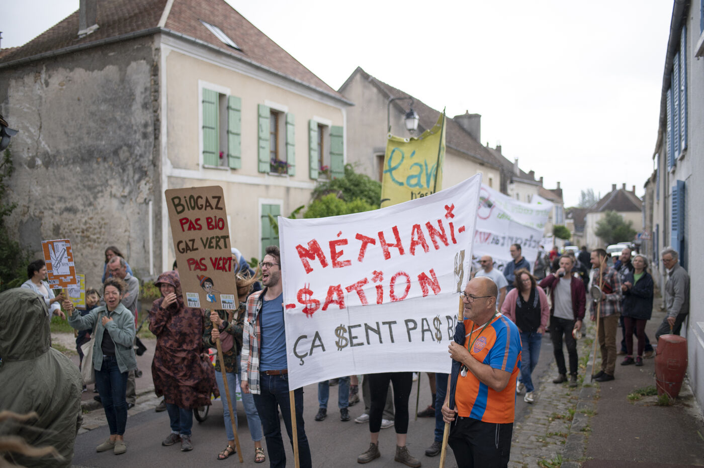 Since the discovery of this project by three local farmers, residents of the village and surrounding area have been fighting to prevent its construction. Numerous banners have appeared on the walls of some homes, several demonstrations have already taken place and legal action has been taken by the CDASL association. Those present fear that their lives will ultimately be affected by the plant, which is expected to process around 30 tonnes of inputs a day: unpleasant odours, increased road traffic, rising farmland prices, falling property values, impact on the surrounding biodiversity... They also denounce the lack of transparency surrounding the project and would have liked to have seen public consultations upstream.