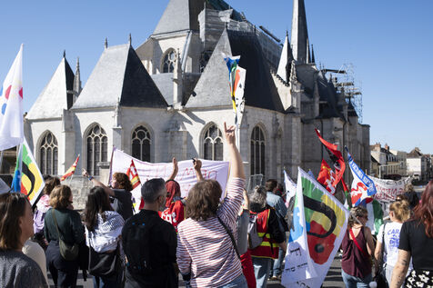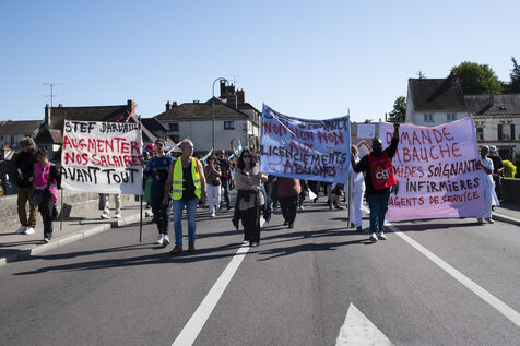 On the occasion of the inter-union day of action, following on from the ‘Bloquons tout’ movement launched on 10 September, around 250 people from Nemours and the surrounding area gathered to protest against the project promoted by E. Macron and his successive governments. The CGT and FSU unions organised a march between the STEF company, where ‘unfair dismissals’ are being denounced, and Place de la République. Teachers, hospital staff and workers from local factories and industries marched together before speeches were given at the end of the procession.