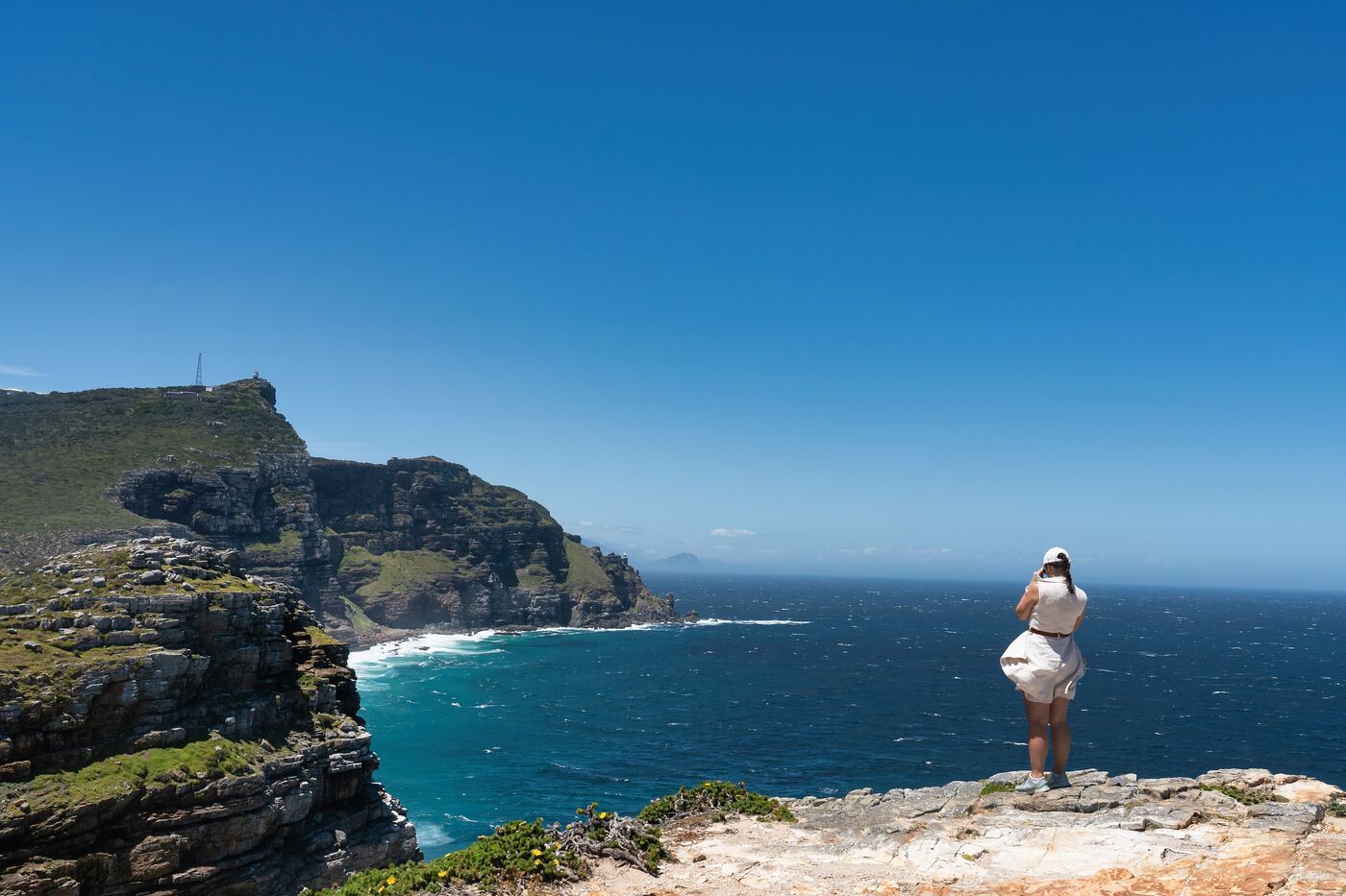 The Cape of Good Hope, nestled at the southernmost tip of South Africa's Cape Peninsula, offers an exceptional tourist getaway with its breathtaking scenery. Visitors can discover unspoilt nature, where the iconic lighthouse overlooks rugged coastlines and wilderness. Roaming the region, it's possible to observe a variety of wildlife, including mischievous monkeys and majestic ostriches, while exploring the rich ecosystem of the fynbos, famous for its many endemic species.