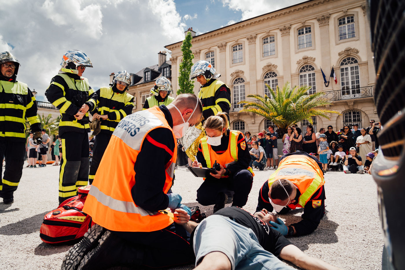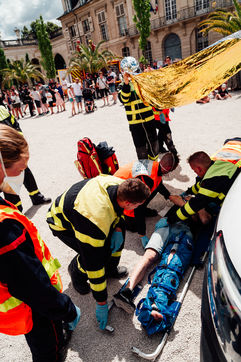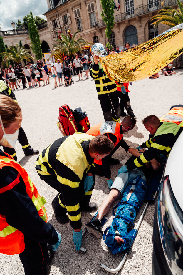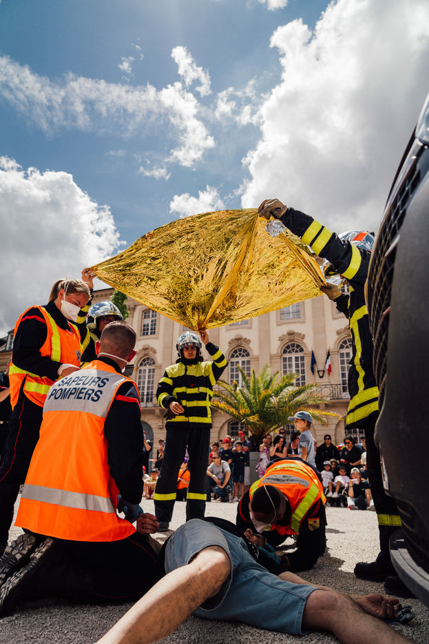 After a morning devoted to ceremonies and medals, the Meurthe-et-Moselle firefighters headed to the Place de la Carrière. On site, various vehicles were presented to the public, as well as information stands. At the end of the day, a demonstration of assistance to victims and first aid was presented to the public.