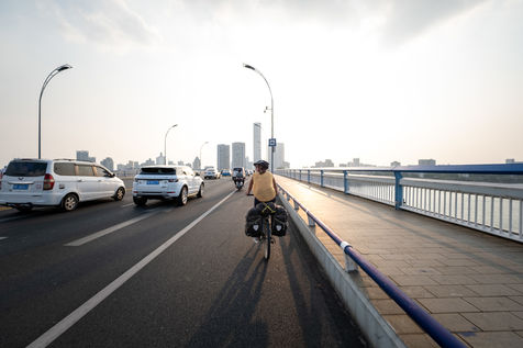 Nous avons décidé de parcourir la Chine à vélo. Dans l'imaginaire collectif, le vélo est omniprésent en Chine, mais il en est rien aujourd'hui. Le scooter a depuis bien longtemps remplacé le vélo. Nous sommes passé par des villes où nous nous sentions bien seuls sur les pistes cyclables envahis de deux roues motorisées.