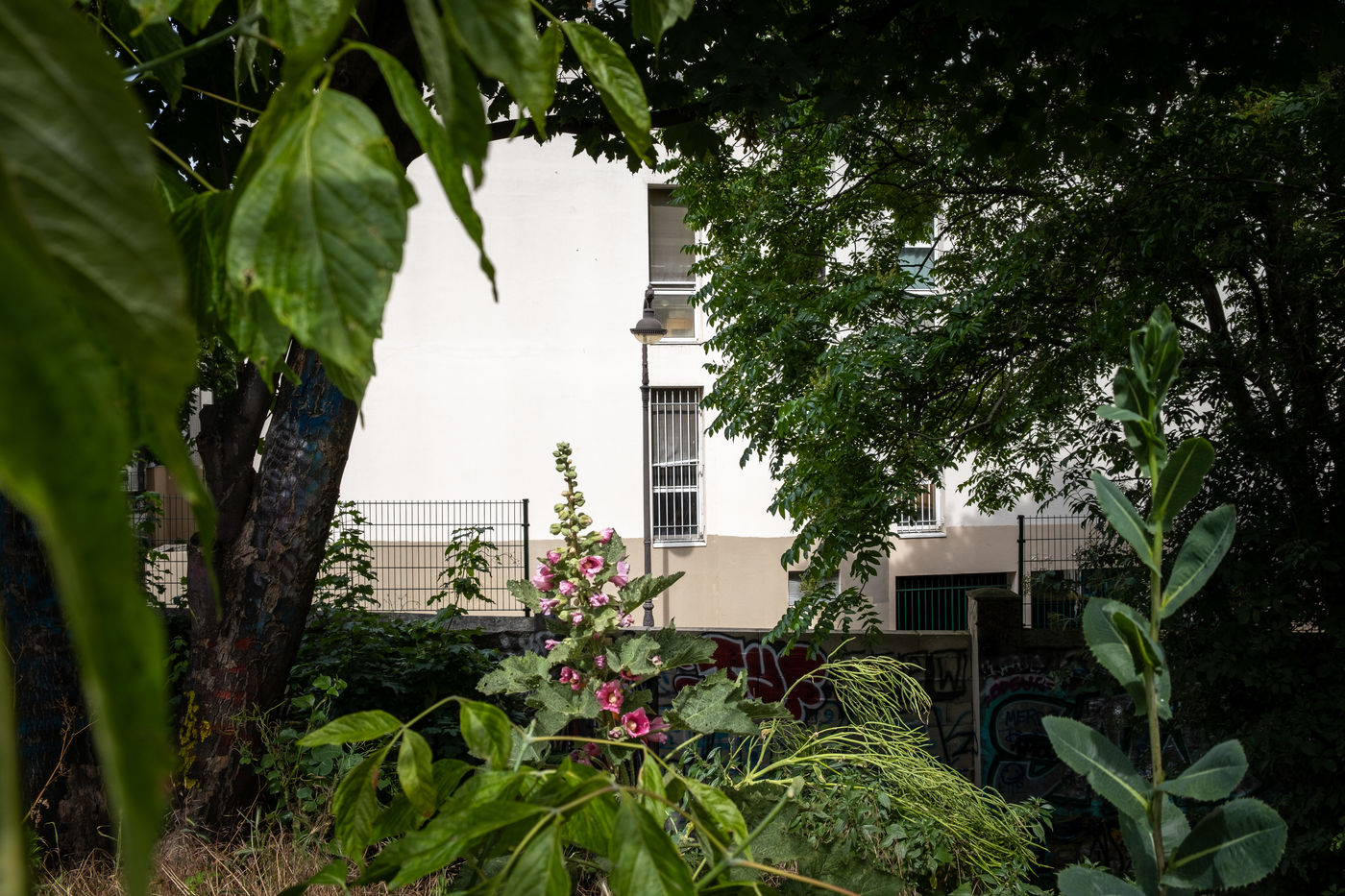 Paris, ville à très forte densité de population, première destination touristique au monde. Le point de vue d'un provincial sur la capitale, loin des lieux iconiques de la ville, à la recherche des traces de l'Homme derrière les arbres et la végétation. Chercher la civilisation derrière la verdure. Paris, juin 2019.