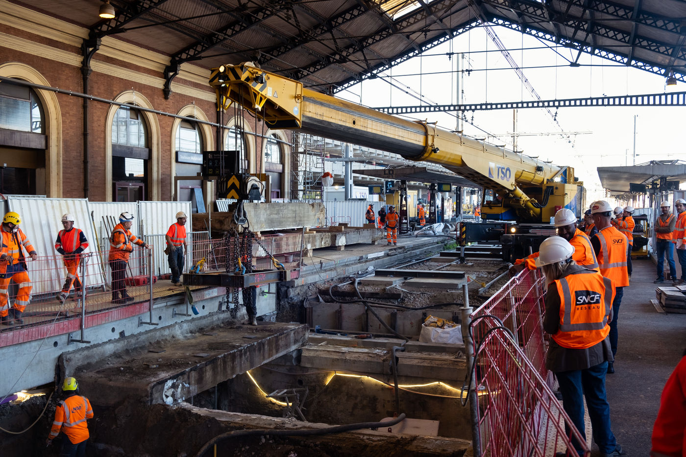 During the 3 days of the weekend of November 11, the SNCF closed the 2 main railway lines to traffic in order to carry out the work to widen the underground passage. In order to carry out the operation in 3 days, a Kirow crane was needed, it is the most powerful railway crane in France. This work is part of the accessibility of the platforms of the Toulouse Matabiau station which is spread over 18 months.