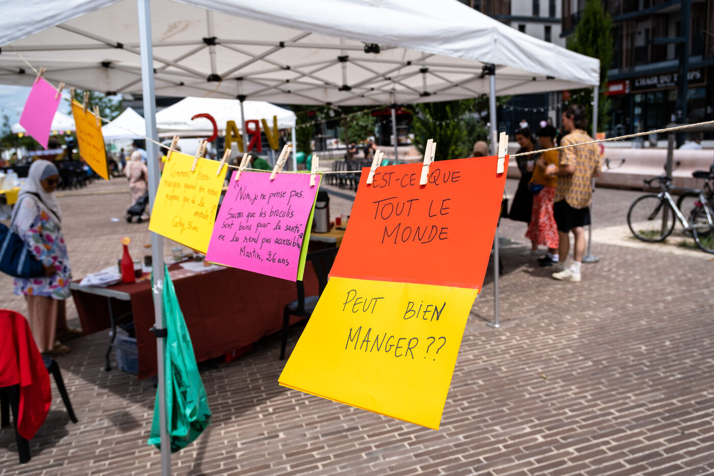 Sur la place Ahmed Chenane des Izards, un des quartiers prioritaires de la ville de Toulouse, un concours culinaire est organisé à destination des habitants pour promouvoir une alimentation seine et équilibrée. L'association VRAC (Vers un Reseau d'Achat en Commun) fait partie des organisateurs.