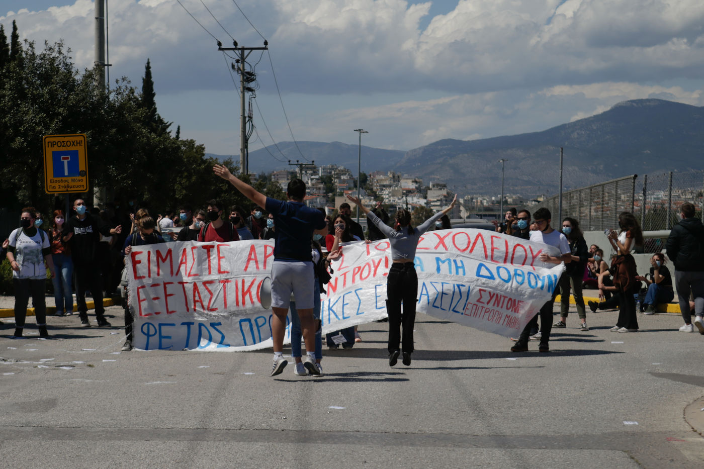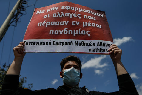 Pupils demonstrate in front of the Ministry of Education against the anti covid-19 measures applied in schools.