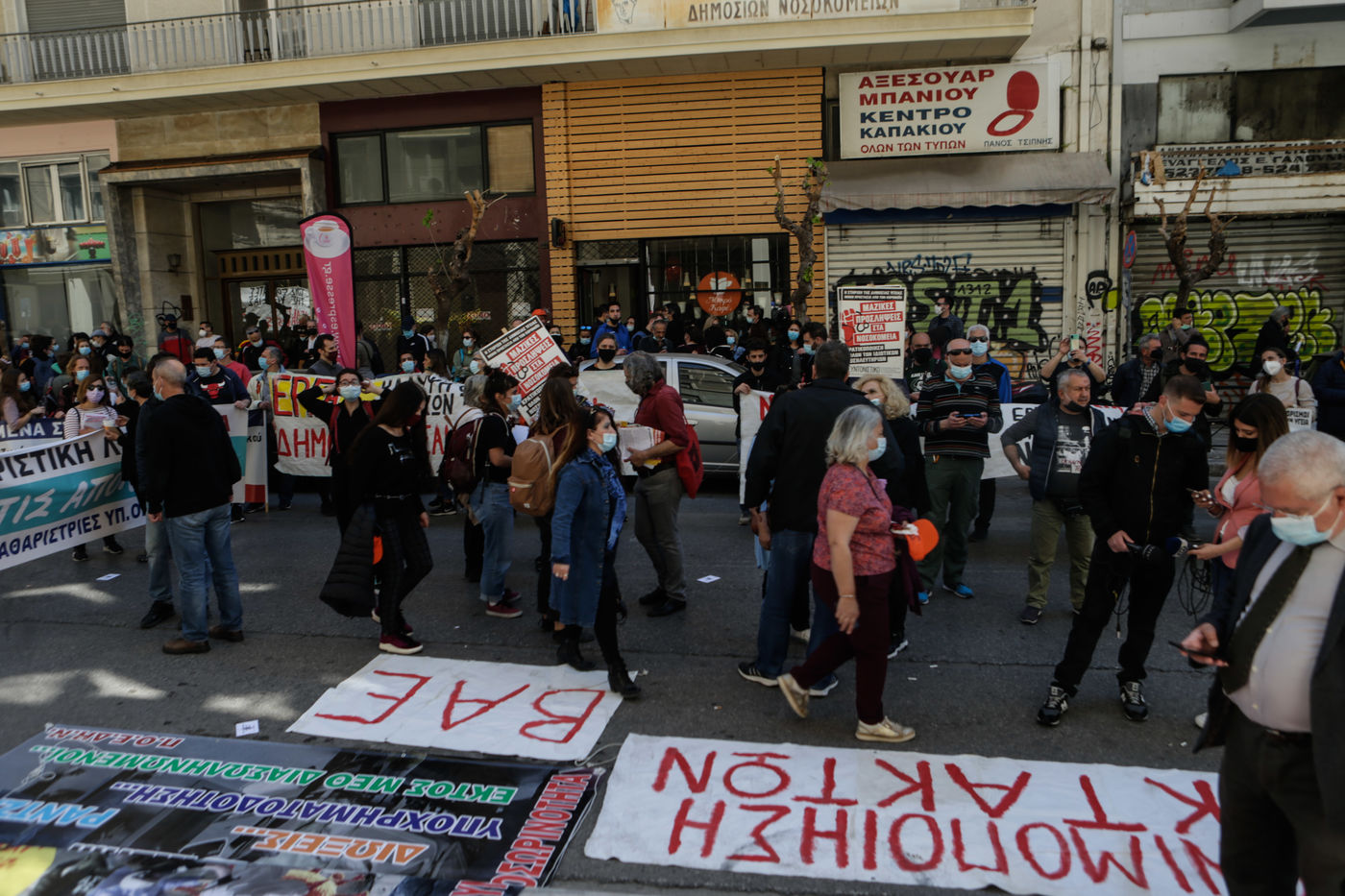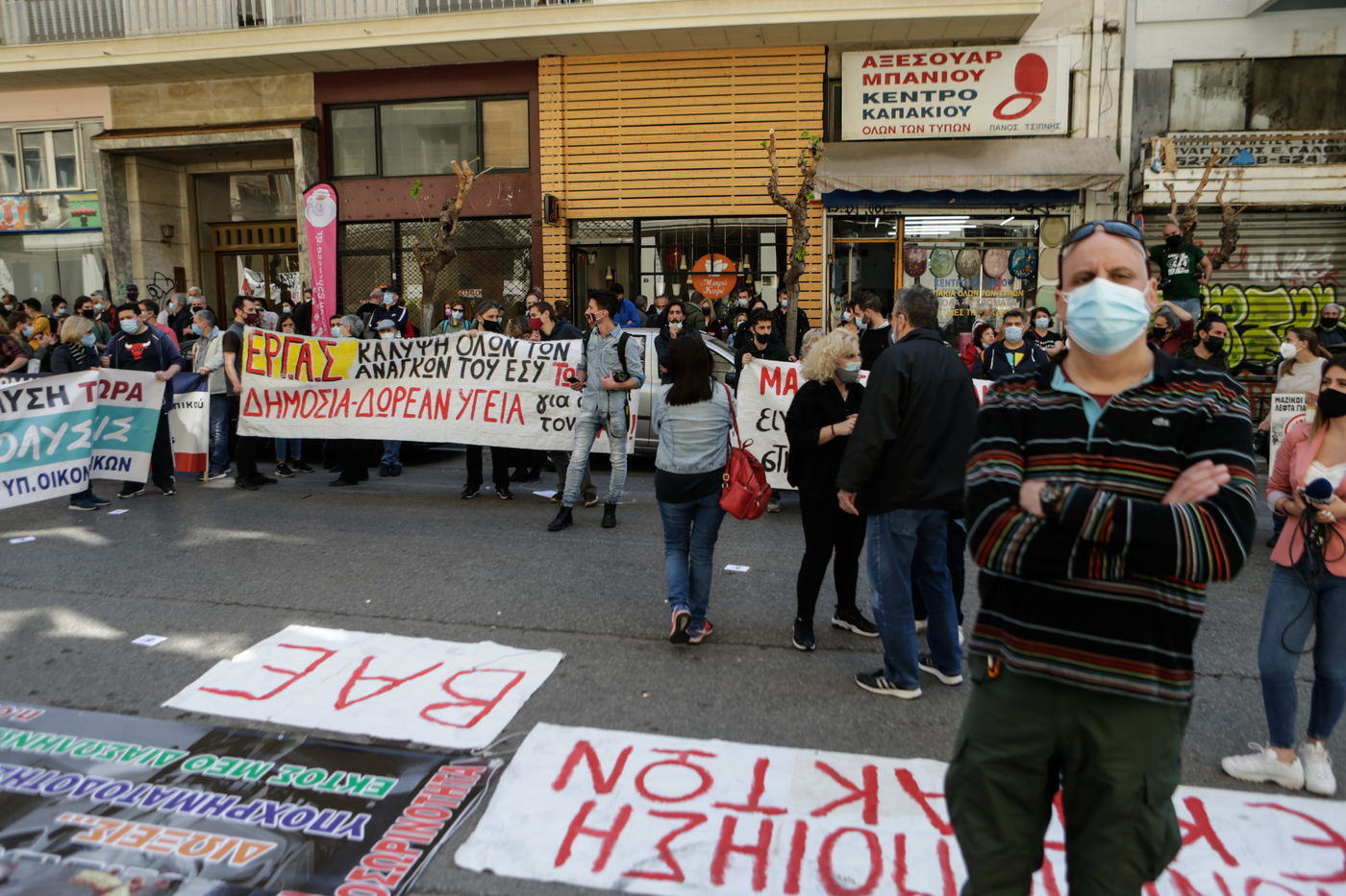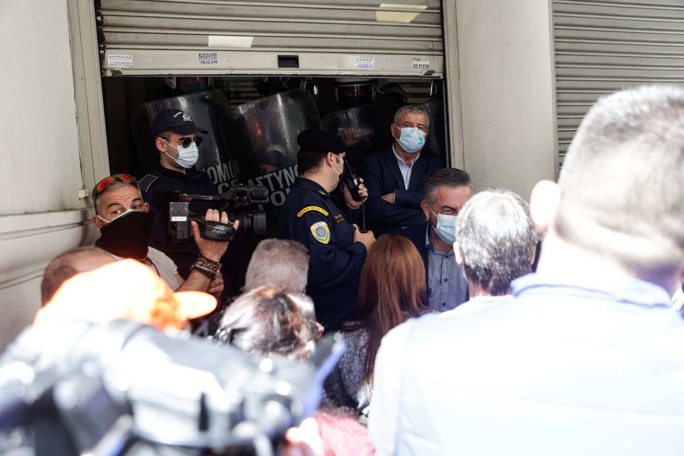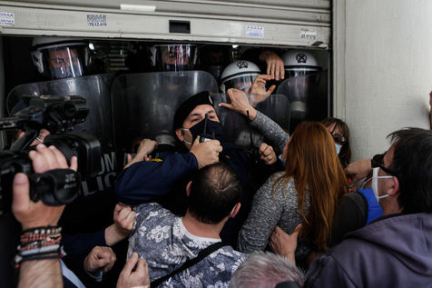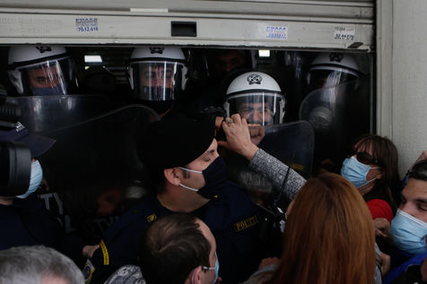 Les travailleurs de la santé des hôpitaux publics essaient de forcer l'entrée du ministère de la Santé à Athènes afin de voir le ministre de la Santé, Vasilis Kikilias. Les agents de santé ont fait la grève aujourd'hui pour montrer leur mécontentement face à la gestion, par le gouvernement, de la pandémie de covid-19.