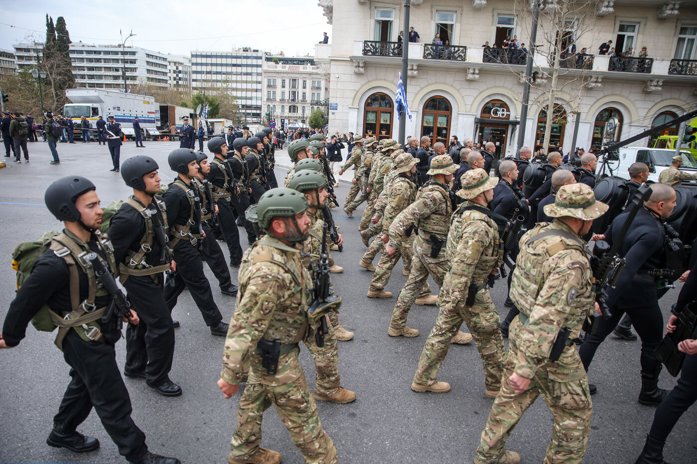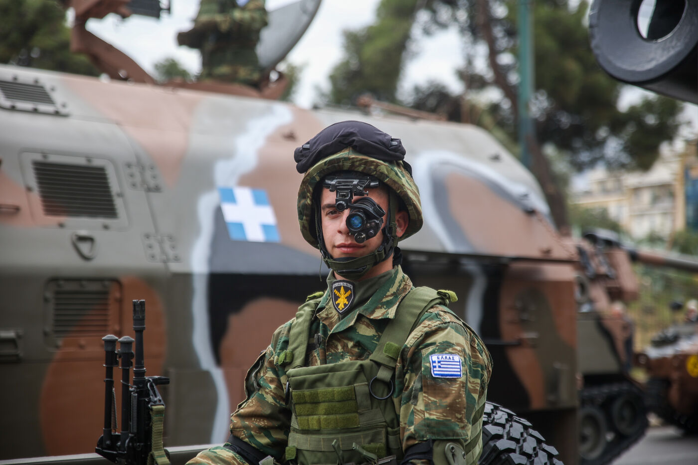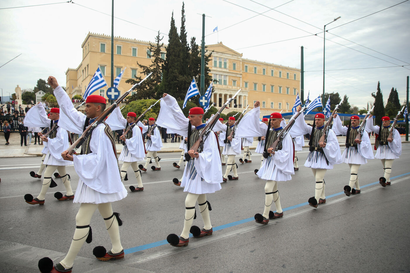 Le 25 mars est la date de commémoration du début de la Révolution Hellenique et de l'indépendance de la Grèce de l'empire Ottoman. Comme chaque année un défilé militaire lieu lieu dans la capitale, Athènes. Des milliers des participants observent et applaudissent les divers corps de la défense de Grèce ainsi que leurs matériels. Cette année ce défilé a lieu dans un moment assez particulier où l’Union Européenne vient de voter des dépenses militaires a hauteur de 800 milliards d'euros.