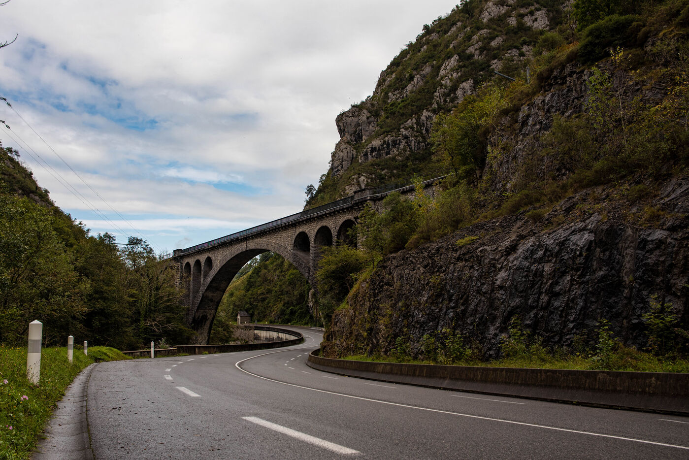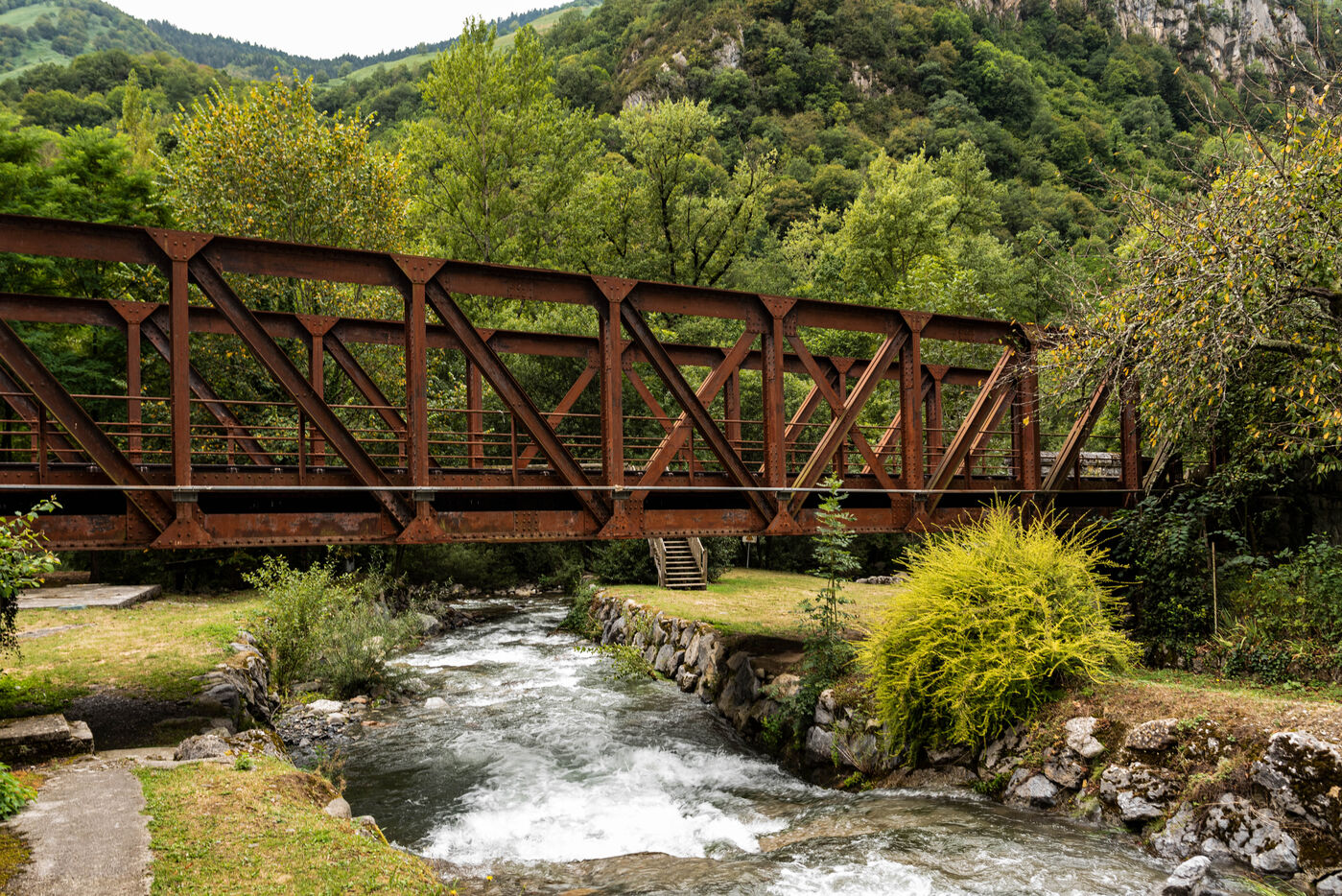 In 1928, the rail connection between France and Spain has through the Pyrenees mountains was completed. But in 1973, a freight train fell into the river and one of the many bridges on the french side collapsed. There is no train between the two countries on this railway line ever since. But the line could be rebuilt in 2024. Here is what the abandoned railway line looks like on the French side.