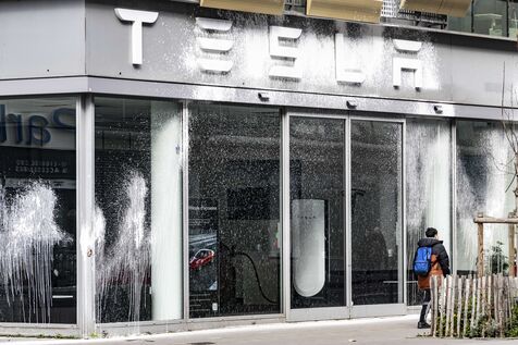 Activists spray Tesla France headquarters with white paint