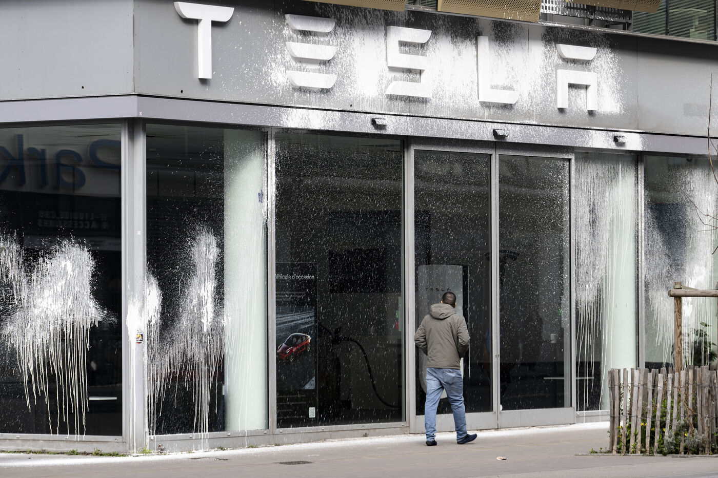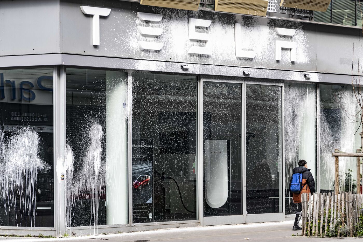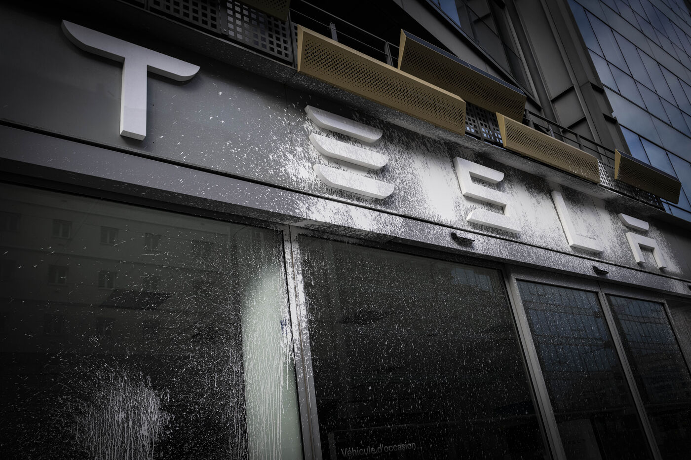 Des militants aspergent le siège de Tesla France avec de la peinture blanche