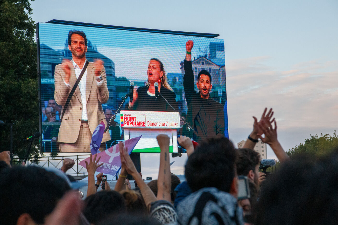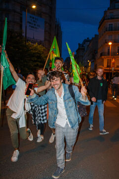 Au siège de LFI, la victoire de la gauche au 2nd tour des élections législatives - Paris - 7 juillet 2024