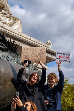 Gathering in support of Gisèle Pelicot, to thank her for her courage in the trial against the 51 men who raped her, while she had been drugged by her husband. Place de la République, in Paris, September 14, 2024.