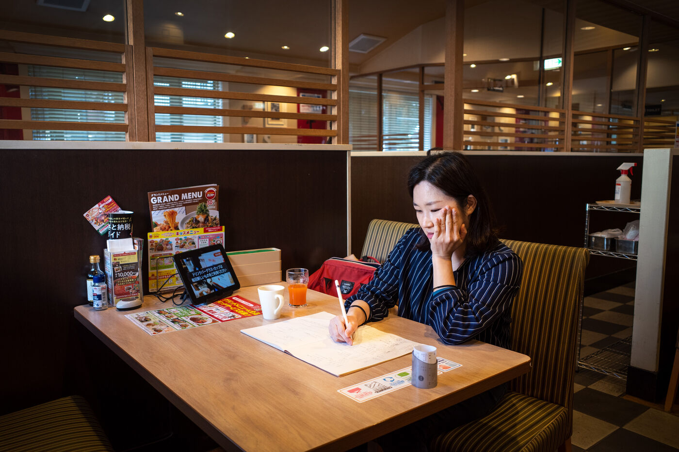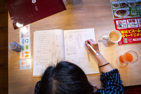 To break the monotony of her working days, Ryo likes to go to work in a family restaurant of the Gusto chain. It is under the gaze of other customers that she finds the pressure to work for hours concentrated on her projects. Every week Ryo submits 30 pages to her editor, 17 of which are published. To achieve such a production she has surrounded herself with 2 assistants, first at home in full board, then by telecommuting from the covid.
