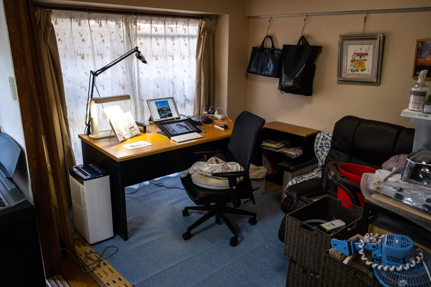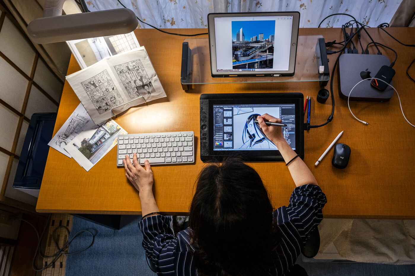 Ryo Katagiri is a 37 years old mangaka published every Sunday in the very popular Shonen Sunday (circulation of 300,000). Like many mangakas, she works from her home, a small apartment in the suburbs of Tokyo. Ryo draws her inspiration from her personal history, from the urban landscapes of her childhood neighborhood where she still lives.