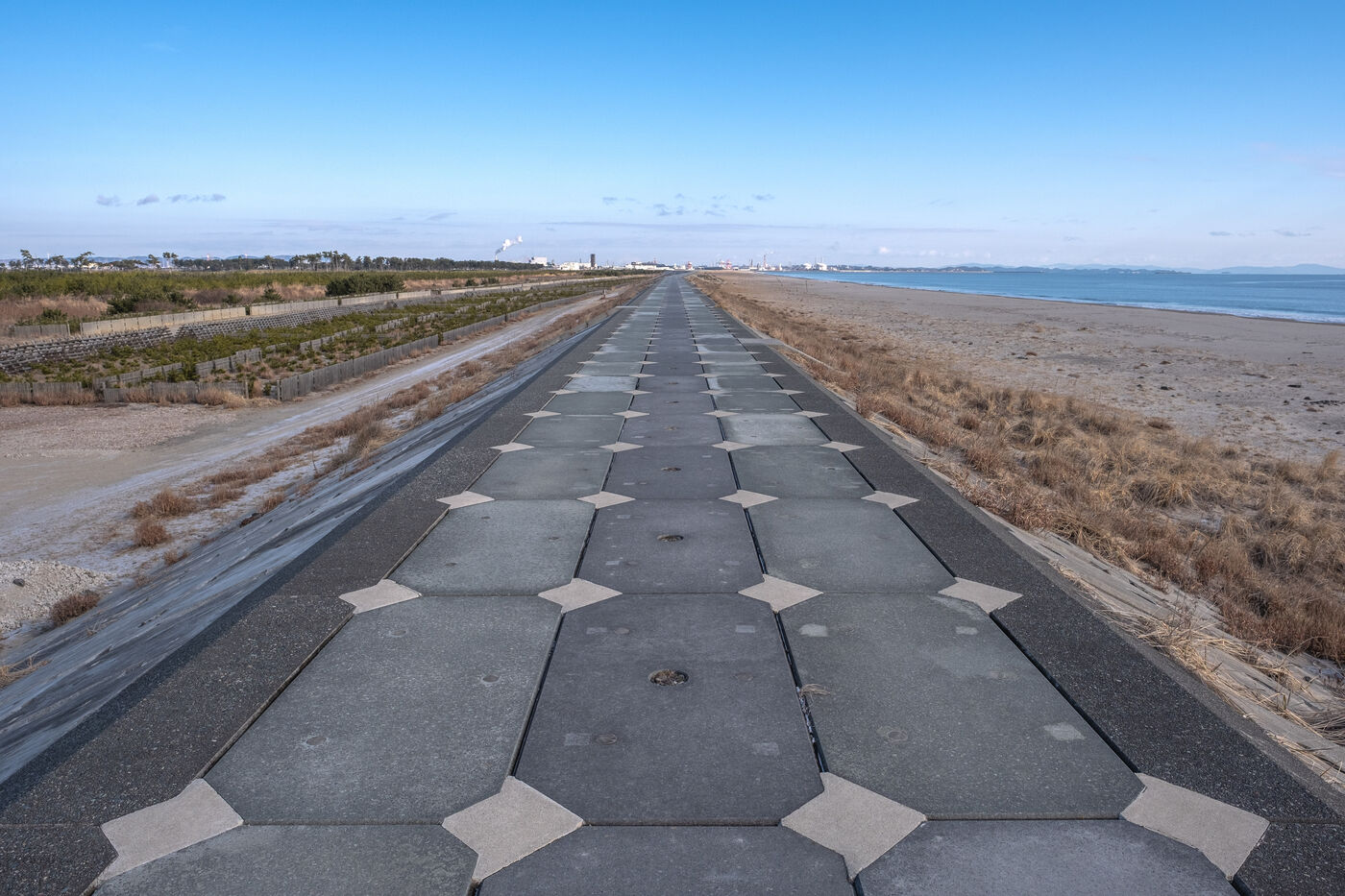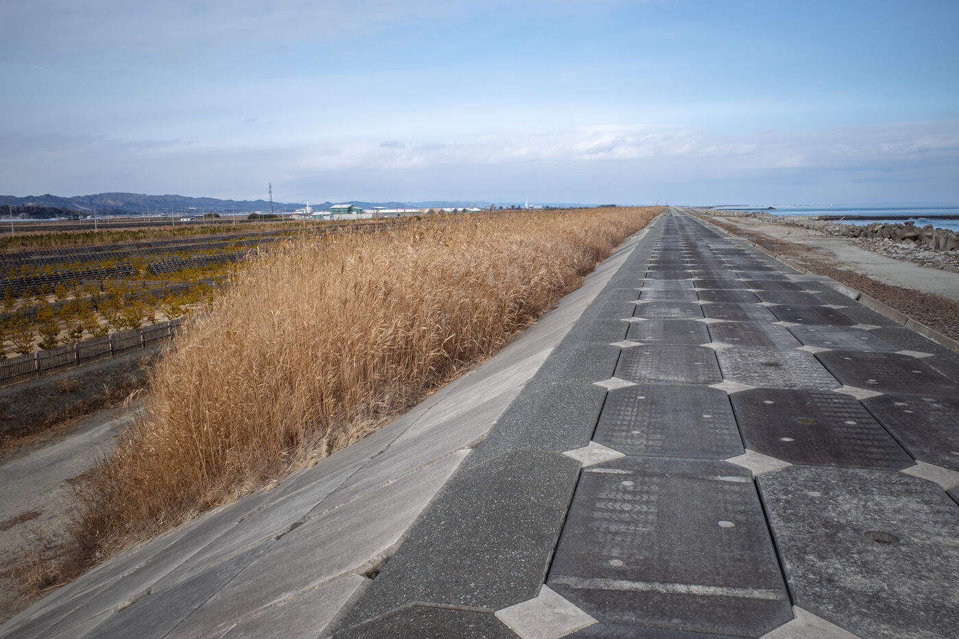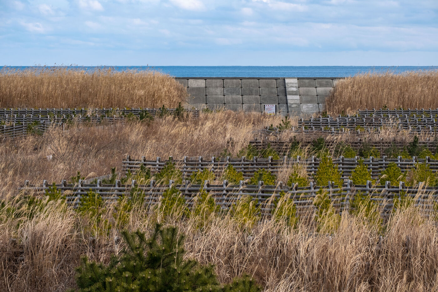 It is a real concrete wall that now stands on the entire coastline of Sendai Bay and the northeast coast. The reaction of the Japanese authorities to the disaster of 2011, which cost the lives of nearly 20,000 people, was to pour a huge amount of concrete along the coast. The dikes built are between 5 and 15 meters high. They are supposed to protect the inhabitants of the lowlands from the advancing sea in case of a tsunami, or at least to slow down its course to allow people to evacuate to safe ground. Beyond the questionable effectiveness of such a proposal, it is a whole geographical and mental organization that is turned upside down. The links between land and sea are destroyed, the estuaries and river mouths are now dammed up, purely and simply blocked by colossal works. This unleashing was done for the benefit of Japanese construction companies, big winners of this reshuffling of the maps. The inhabitants have to learn to live without being able to look at the sea as they used to do.