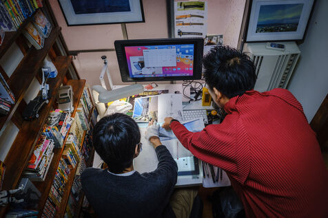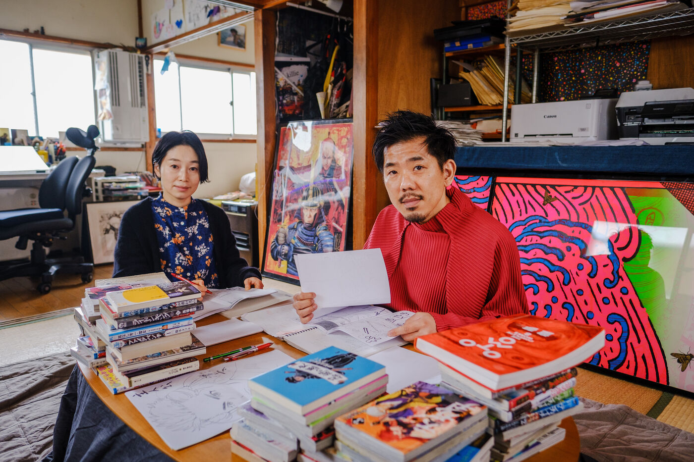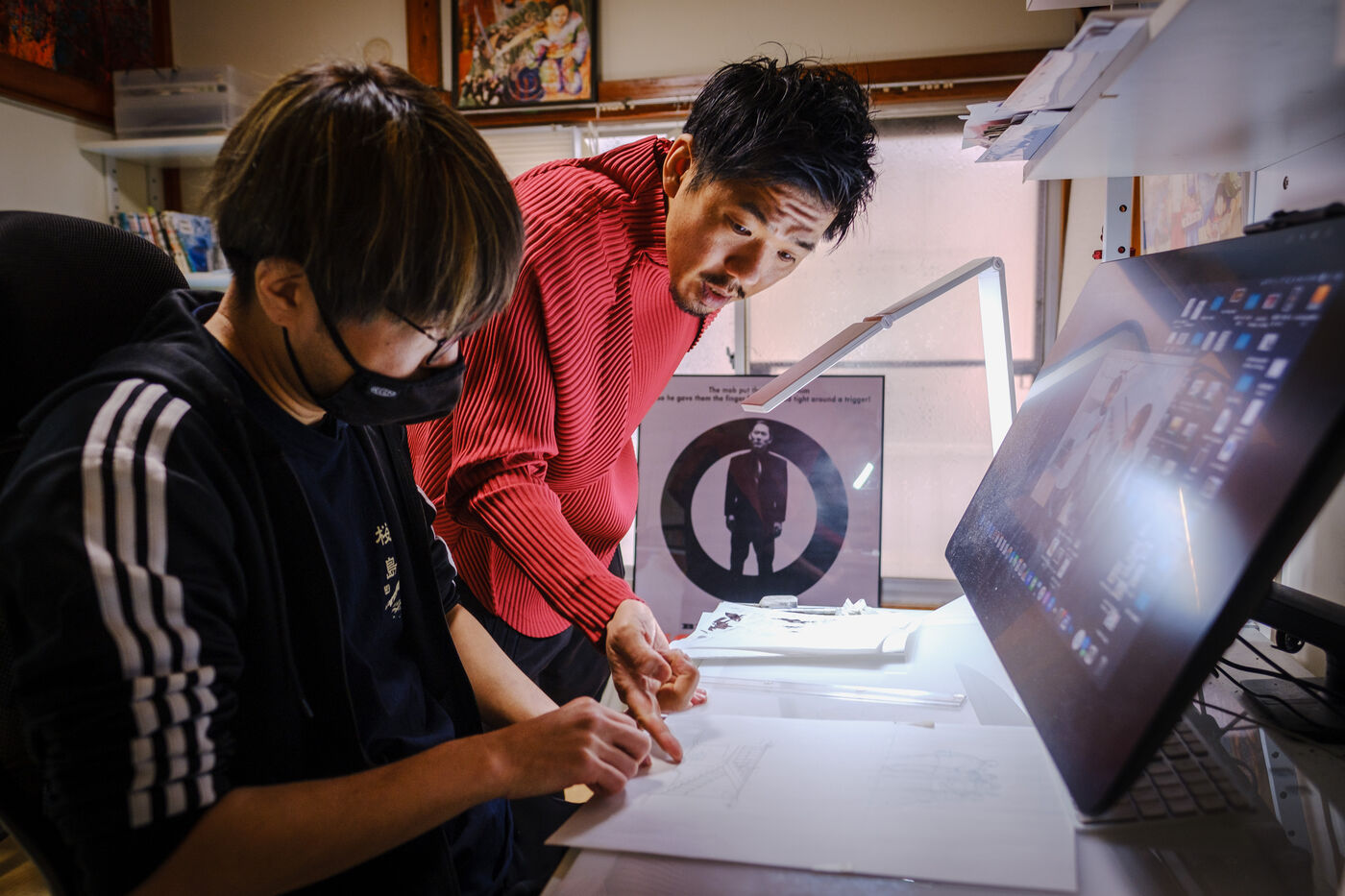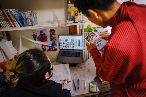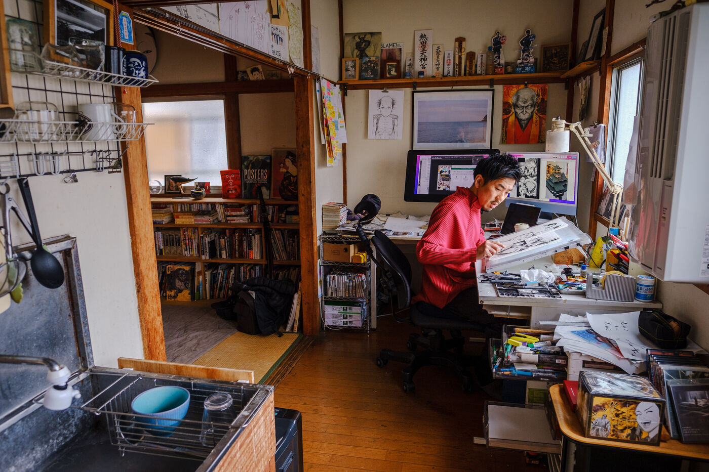 He always works in an analog way, with pencils and ink, and then he digitizes and finishes his creative process in a digital way. To help him, Todo has 3 assistants.