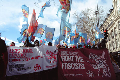 Following the violent attack on antifascist activists by far-right militants, a demonstration was organized by Young Struggle on February 22 at Place de la République in Paris.