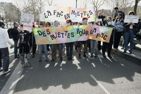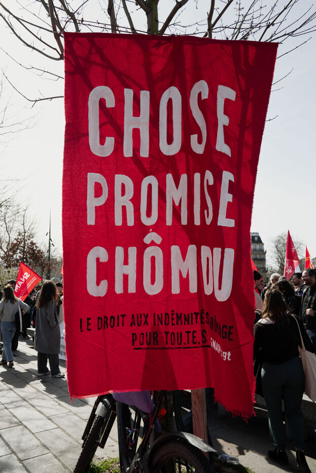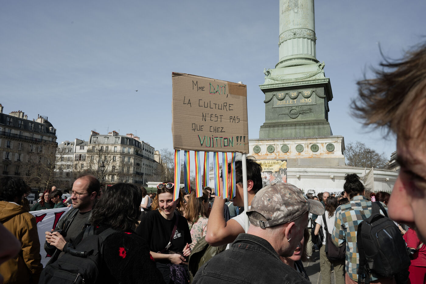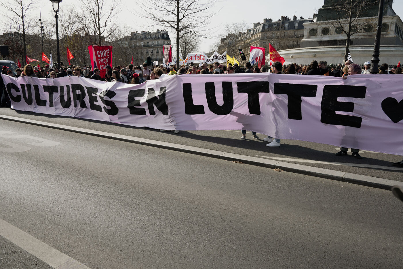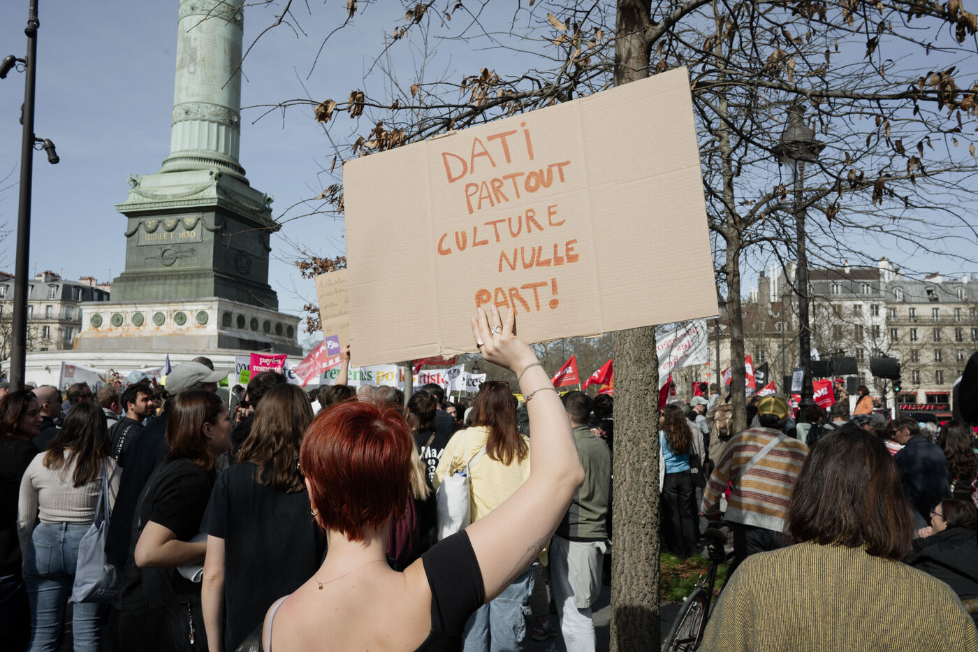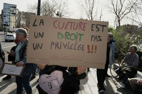 Demonstration by intermittent workers and employees of cultural institutions against the government's cuts in funding for culture, in particular the Culture Pass, in Paris, France on March 20, 2025.