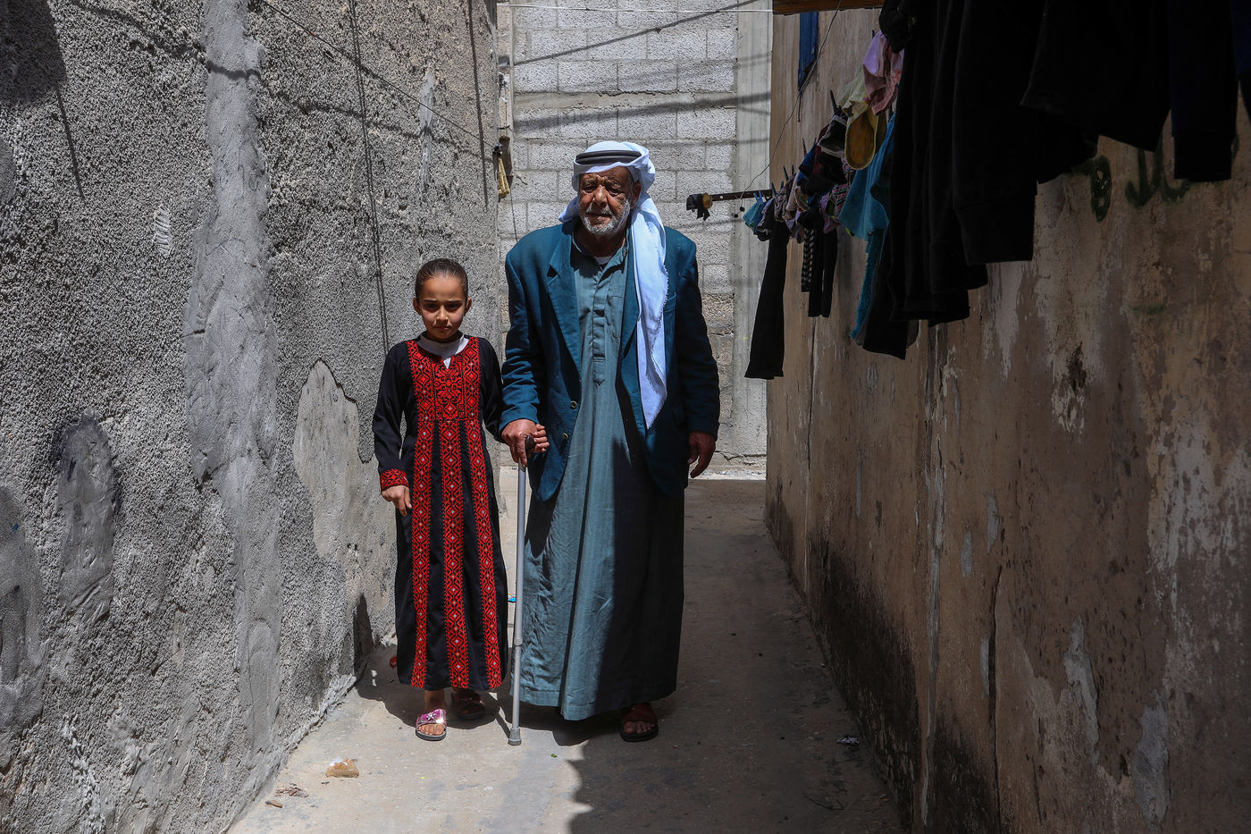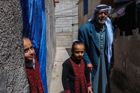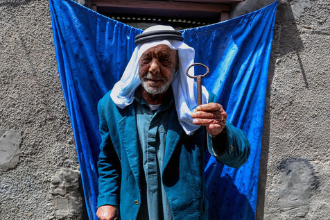 Rafah, GAZA STRIP - MARCH 29. Palestinian Salem Abu Amra (80 years old), originally from the city of Beersheba. Abu Amra says we were expelled from it by Zionist groups with the help of the British Mandate at the time. A day before the 46th anniversary of Land Day. In the Rafah refugee camp in the southern Gaza Strip, On March 29, 2022.