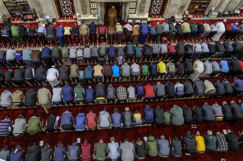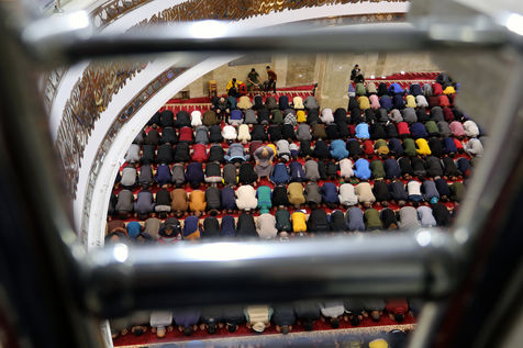 LES FIDÈLES MUSULMANS EFFECTUENT LA PREMIÈRE PRIÈRE TARAWIH DU SOIR