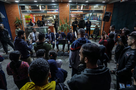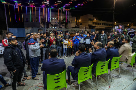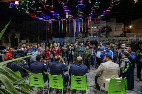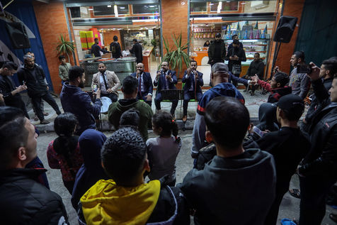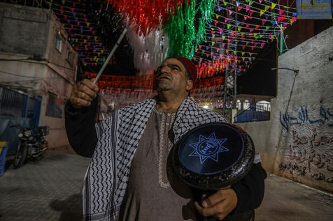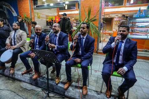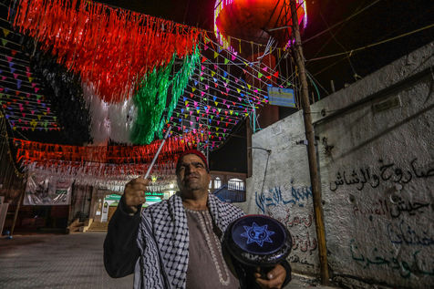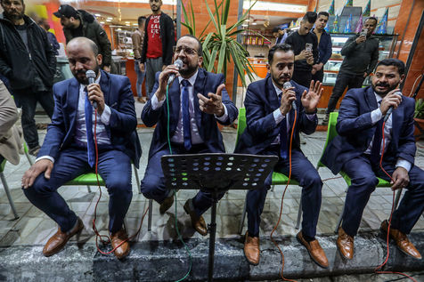 RAFAH, GAZA STRIP - APRIL 04. A Palestinian group of Islamic praise sings of Ramadan, the holy month, in a street in the city of Rafah in the southern Gaza Strip, on April 4, 2022.