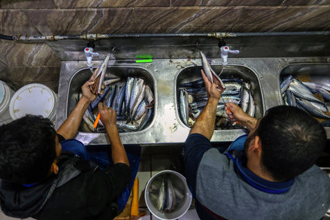 PALESTINIANS PREPARE SMOKED FISH (RANGA) TO CELEBRATE THE UPCOMING EID AL-FITR