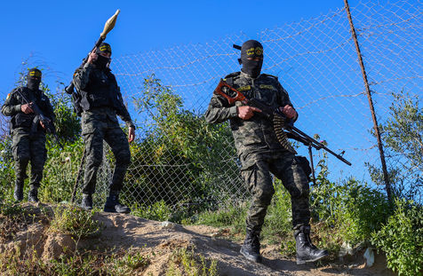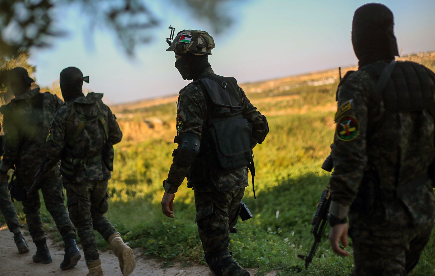BEIT HANOUN, GAZA STRIP - APRIL 21. Members of Al-Saraya Al-Quds, the military wing of the Islamic Jihad Movement in Palestine, during a training on their military capabilities and an examination of its readiness for any upcoming escalation with Israel. In the town of Beit Hanoun in the northern Gaza Strip, April 21, 2022.