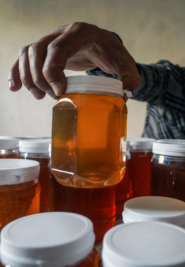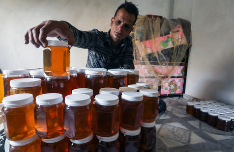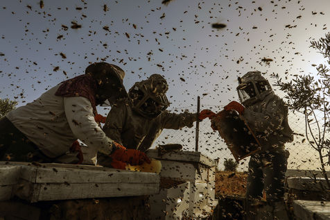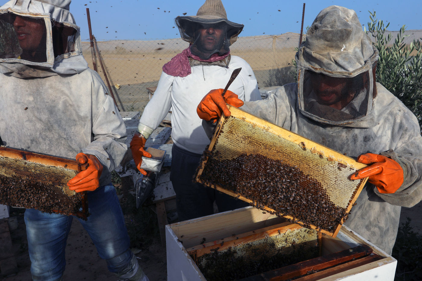DES PALESTINIENS RÉCOLTENT DU MIEL LORS DE LA RÉCOLTE ANNUELLE DANS LA BANDE DE GAZA