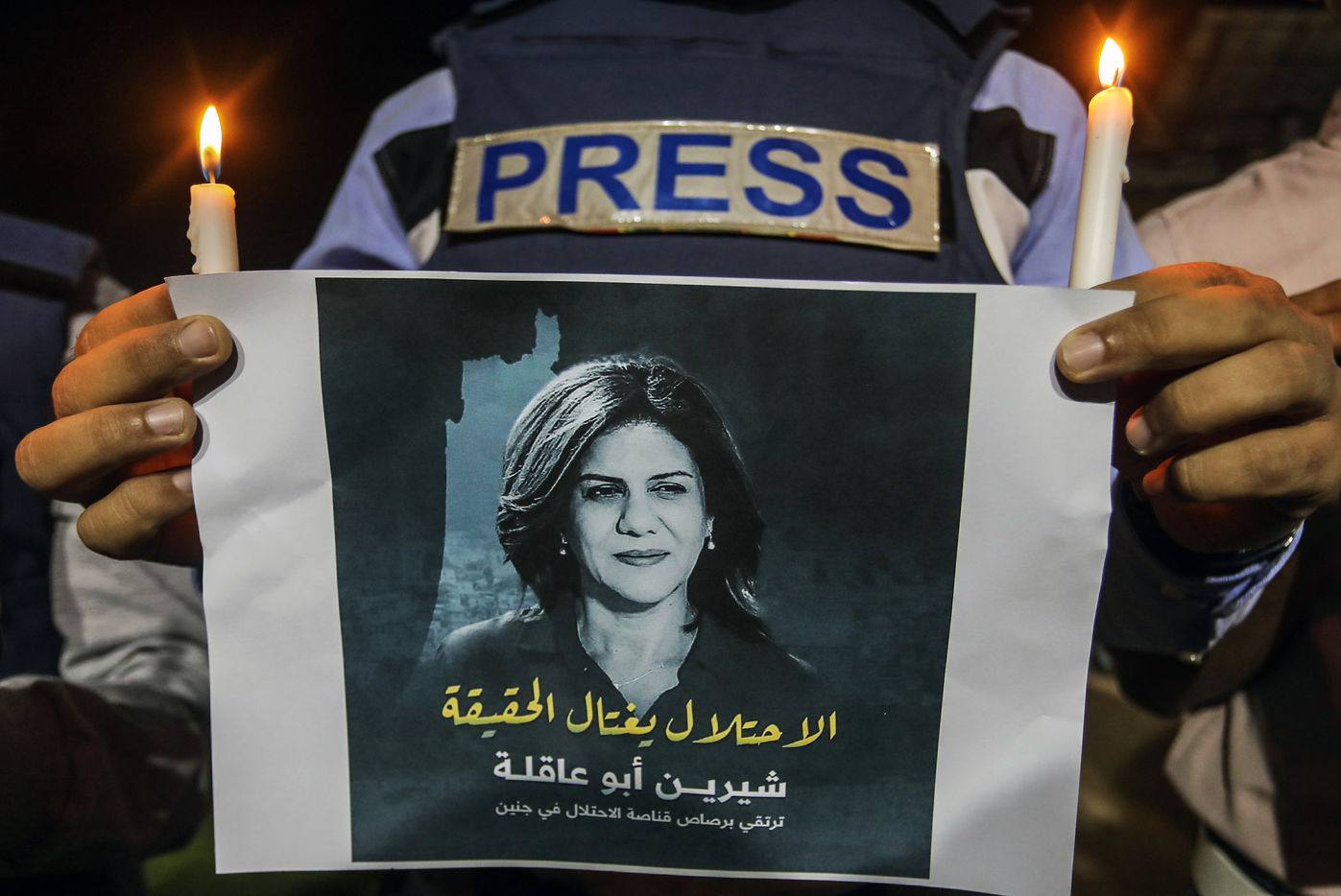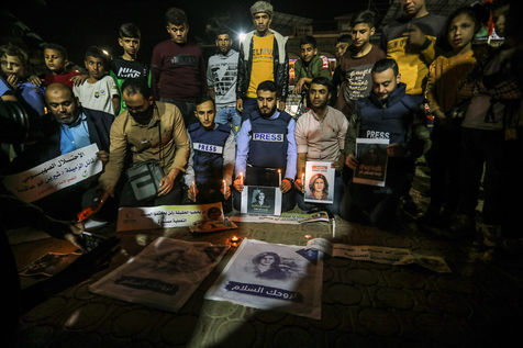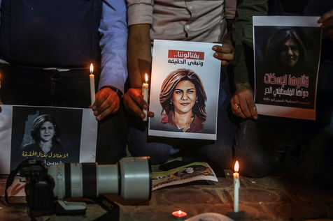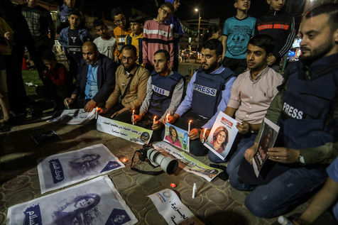 JOURNALISTS LIGHT CANDLES IN SOLIDARITY WITH JOURNALIST SHERINE ABU AQLEH