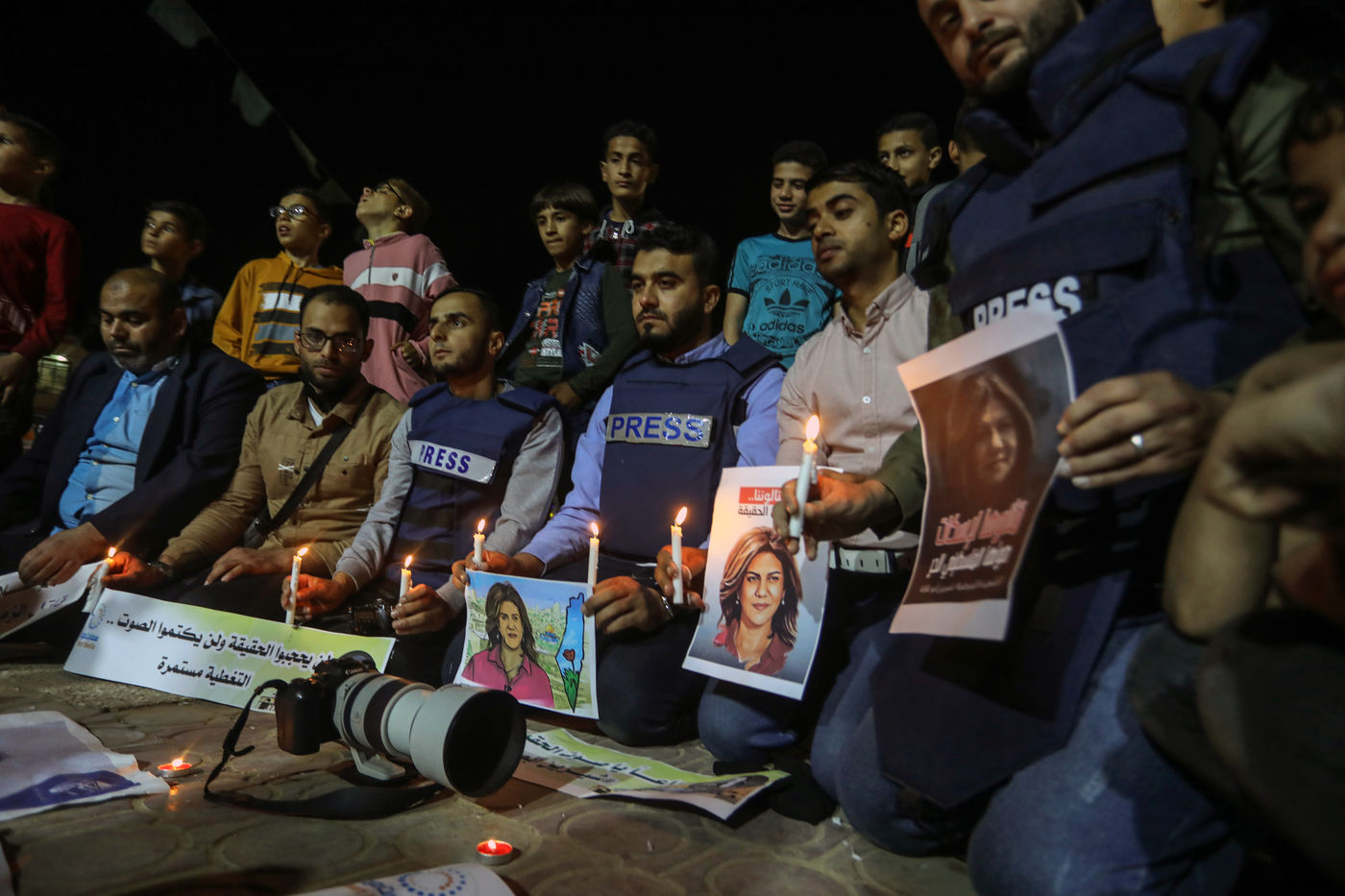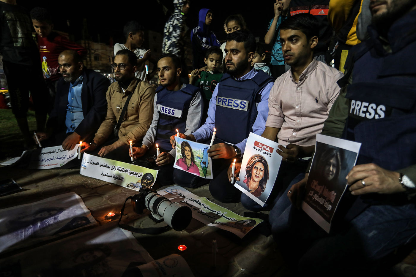 DES JOURNALISTES ALLUMENT DES BOUGIES EN SOLIDARITÉ AVEC LA JOURNALISTE SHERINE ABU AQLEH