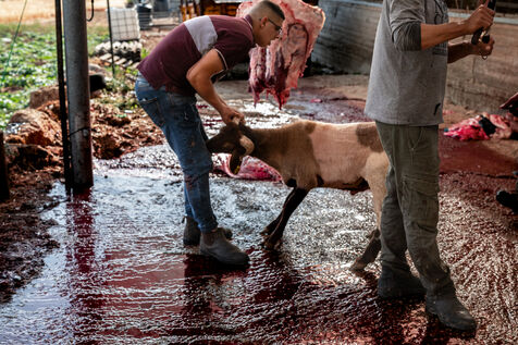 Alors que les célébrations de l'Aïd al-Adha commencent tandis que la guerre a Gaza fait rage et que la Cisjordanie fait face a des difficultés économiques majeures, les musulmans palestiniens qui peuvent se le permettre offrent leur sacrifice à Dieu en tuant un mouton ou une chèvre - en souvenir du prophète Ibrahim qui était prêt à sacrifier son fils en soumission a Dieu- et en donnant une partie importante de la viande aux pauvres ou dans le besoin.