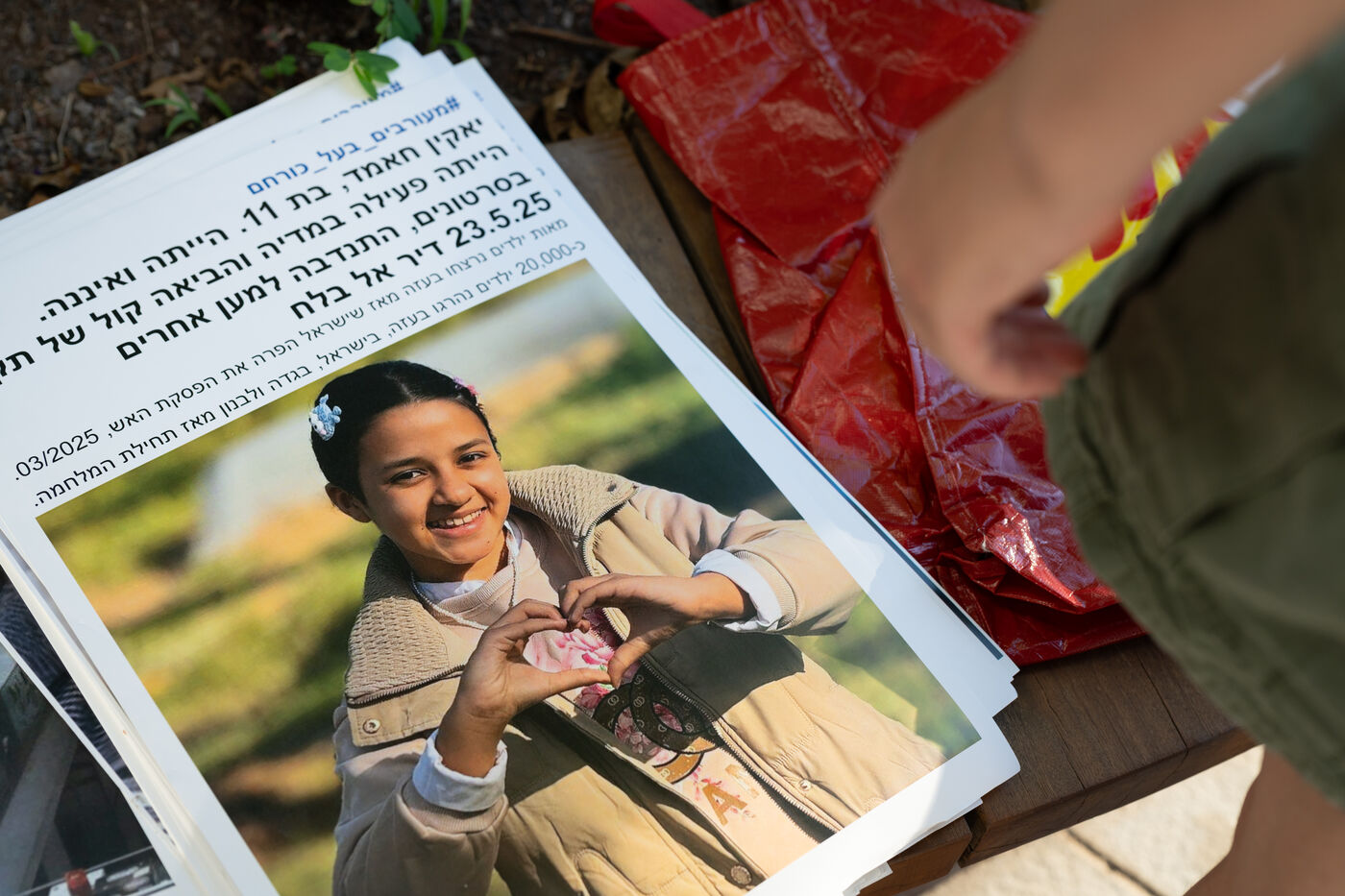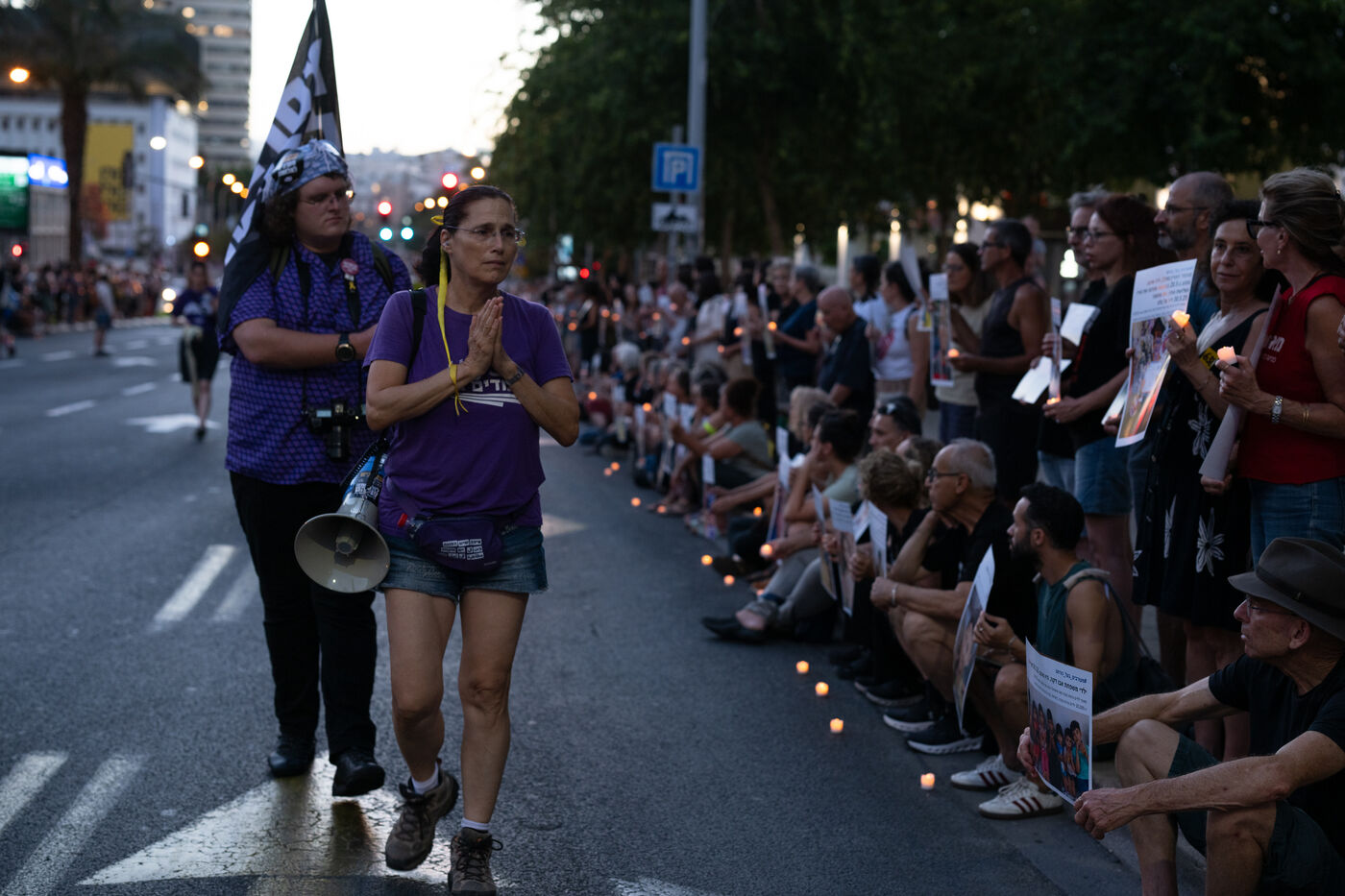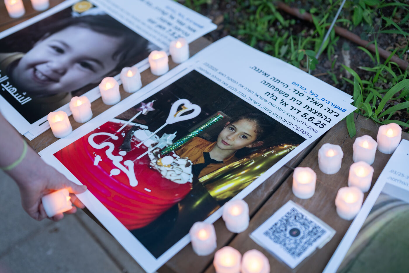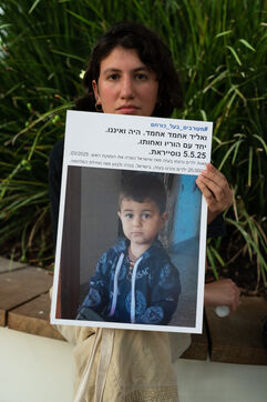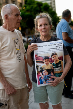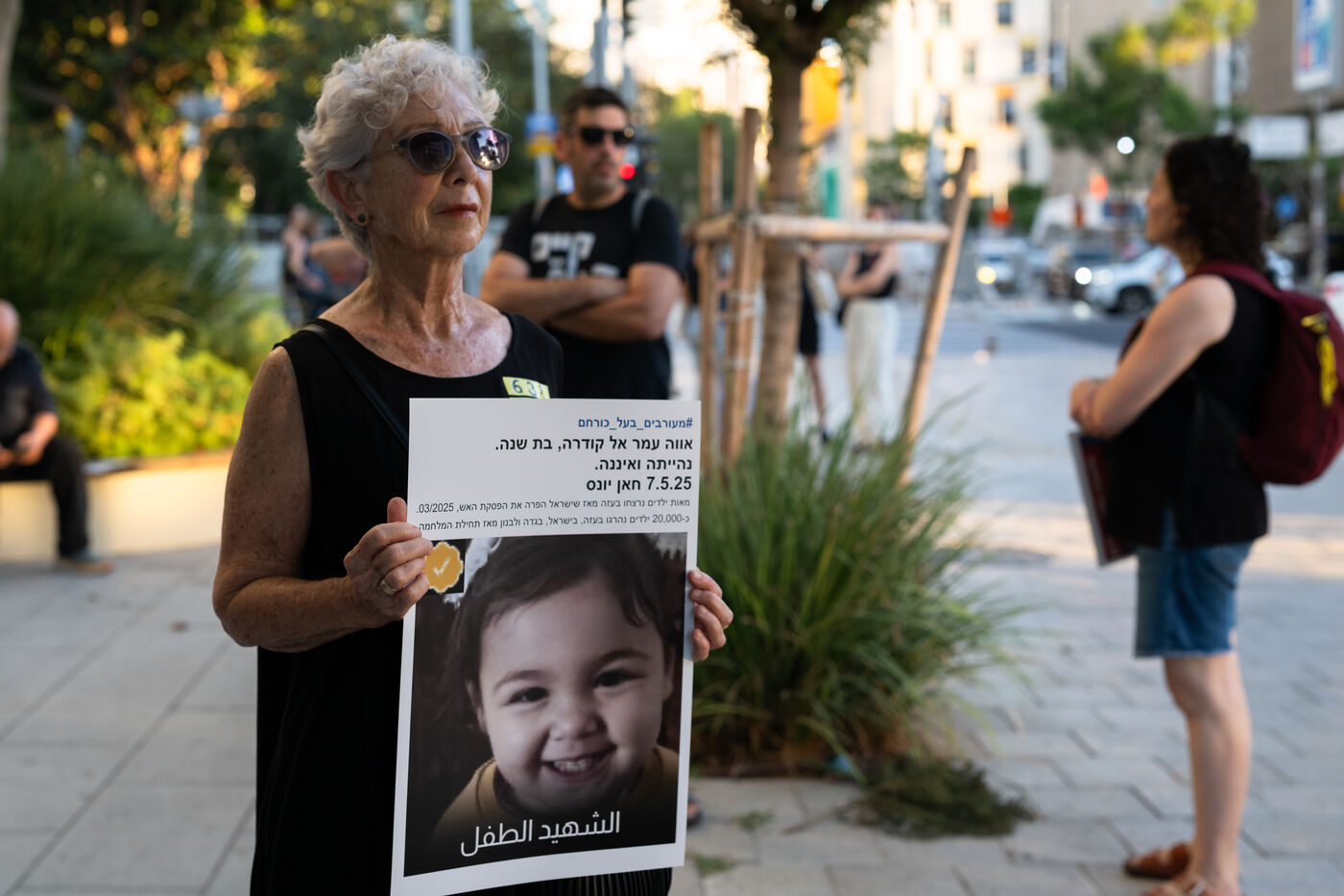 Hundreds of Israelis opposing war stand and sit in the street in a silent and peaceful action, showing photos of Palestinian children from Gaza and the West Bank killed since Israel broke the ceasefire in March 2025, as new ceasefire negotiations are in progress. The vigil took place between Hostages Square and Begin Gate in Tel Aviv—symbolic sites of rallies calling for the release of Israeli hostages held by Hamas in Gaza—creating a space for acknowledging and raising awareness of the reality faced by Palestinians, for exchange, discussion, and sometimes silent confrontation.