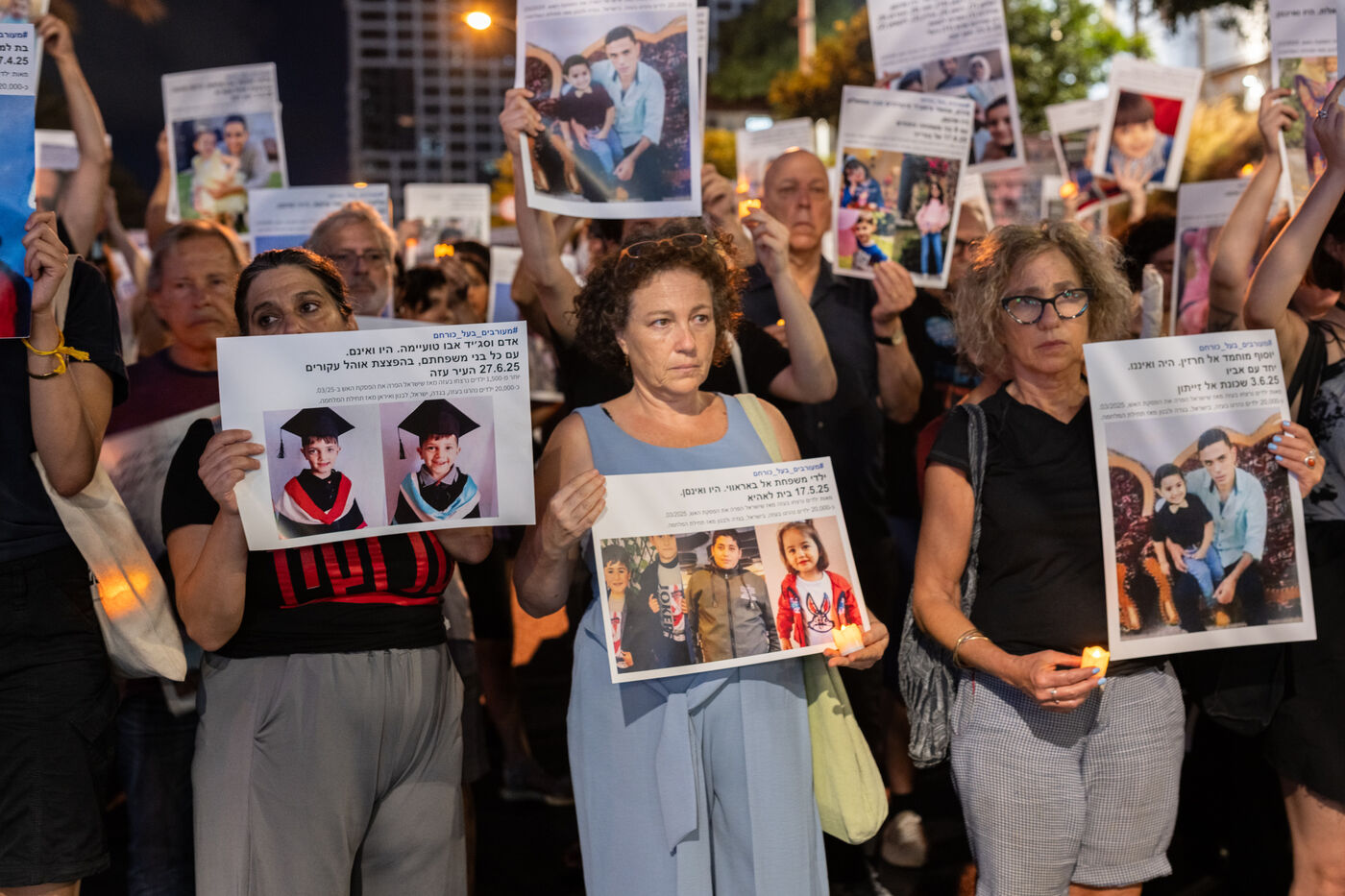 Des centaines d’Israéliens opposés à la guerre ont participé à une veillée silencieuse et pacifique, tenant des photos d’enfants palestiniens tués à Gaza et en Cisjordanie depuis la rupture du cessez-le-feu par Israël en mars 2025, alors que de nouvelles négociations sont en cours. La veillée s’est tenue le samedi 5 juillet 2025, rue Kaplan à Tel-Aviv — lieu emblématique des manifestations pour la libération des otages — créant un espace de reconnaissance et de sensibilisation à la réalité vécue par les Palestiniens, d’échange, de discussion, et parfois de confrontation silencieuse.
