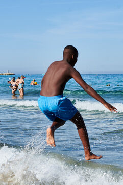 Un groupe d'enfants issus de la Cité Felix Pyat à la plage des Catalans.