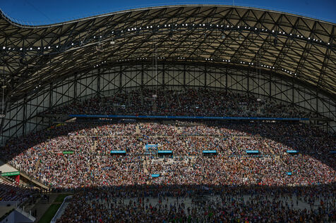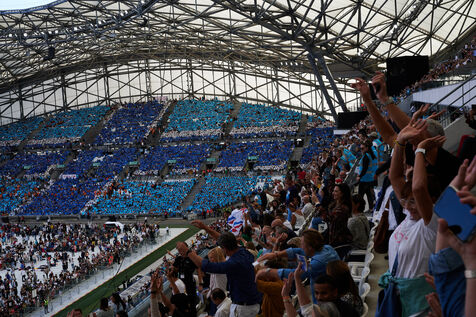 Le Pape François célèbre sa premiere messe en France depuis le début de son pontificat, devant 60 000 personnes au stade Vélodrome.