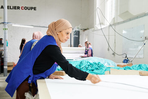 Fil Rouge, a company specialising in sportswear products and chaired by Jean-Francois Aufort, is working with an Insermode integration centre to relocate skills in the textile industry. In this way, 250 employees in Marseilles are boosting the textile industry and "Made in France". 180 people (out of the 250 employees) who are not in employment are following a personalised integration programme lasting up to 2 years ("Parcours Emploi"). This represents 22 nationalities and 141 FTEs. 80% are women. Visit to the main workshops: sewing, cutting, ironing, etc.