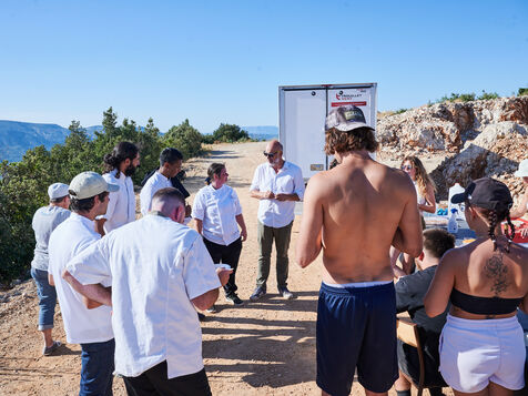 The photoreport focuses on the preparation of the event ‘Dîners Insolites*’ (“Unusual Dinners”), which took place on 9 July 2024 at the Bronzo quarries in the heart of the Escargot valley (Aubagne), and which enabled 3 inmates to get out until one in the morning, living an extraordinary professional experience, supervised by chef Sandrine Sollier.