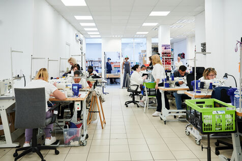 Ministerial visit by Marie-Agnès Poussier-Winsback, Minister for the Social and Solidarity Economy, to the 13 ATYPIK sewing workshops in Marseille. 13 ATIPIK is a textile workshop where sewing valorizes used fabrics to transform them into clothing or accessories, and employs 35 people in social integration.