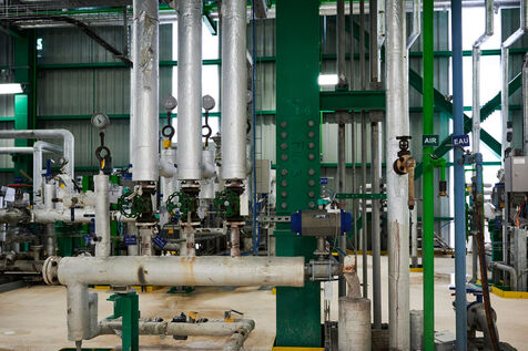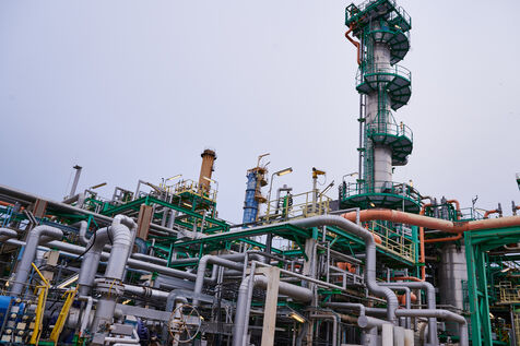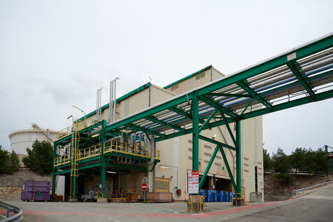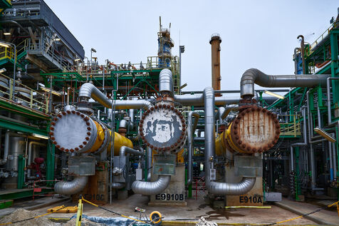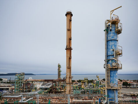Illustrative photos of Total Energies' biorefinery (La Mède site): platerform, site, control and pre-treatment units.