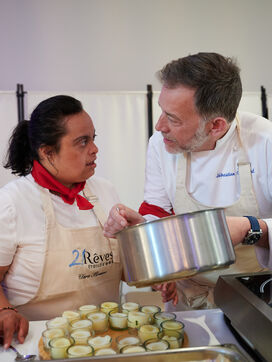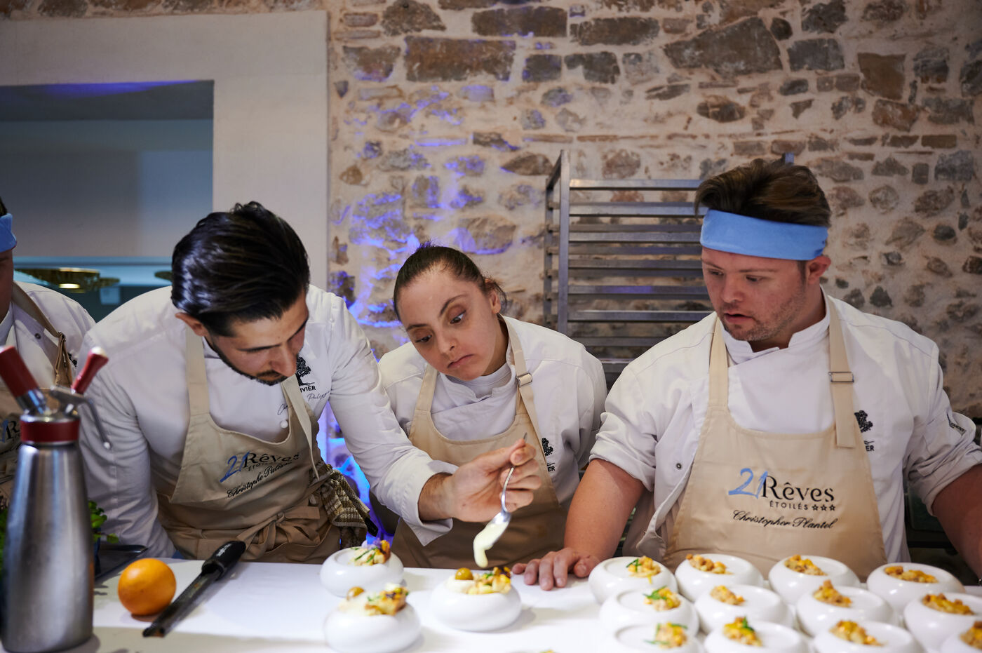 The 21 Rêves association organised the first inclusive culinary competition at the Domaine de la Galinière, bringing together young people with Down's syndrome and 5 renowned chefs from Provence: Sébastien Richard, Mickaël Feval, Fabien Torrente, Christophe Pulizzi and Christophe Thullier.