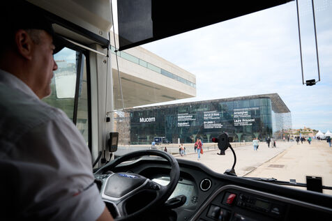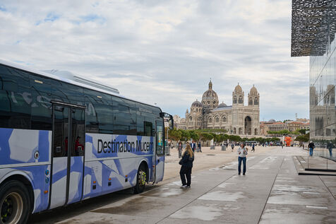 On Sundays, the Destination Mucem bus travels around the city of Marseille with a social mediator, taking local residents directly to the museum. This free service is part of a socially committed policy to make the museum more accessible to a wider public (neighbourhoods with poor public transport links, people not used to visiting exhibitions).