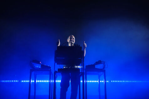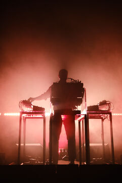 DJ and producer Etienne de Crecy, the iconic figure of the French Touch movement, performing at the Full Moon Party in Marseille.