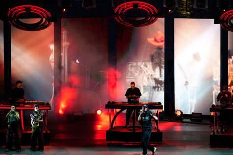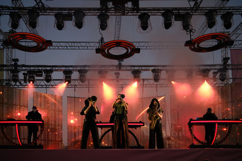 Le collectif Chinese Man fête ses 20 ans sur la scène sur l'eau, durant l'Eté marseillais organisé par la Mairie de Marseille. Images du trio sur scène et du public.