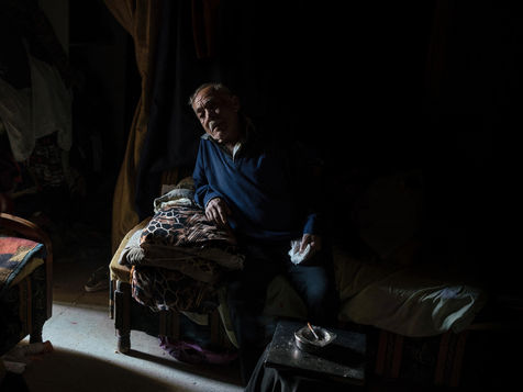 Palestinian refugee Abou Rafat Smaël, born in Jaffa in 1938, now lives in the Gaza building in Sabra, Beirut. A former hospital built by the PLO in the 1970s, it was abandoned and squatted by Palestinian families at the end of the 1980s.