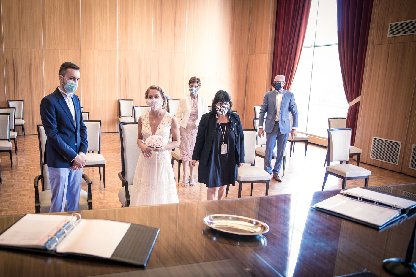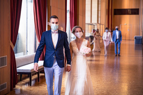 At the end of the confinement, in May 2020, a young Norman couple decides to maintain their marriage and celebrates this union despite the imposition of anti-covid, mask and social distancing health rules at the Le Havre town hall.