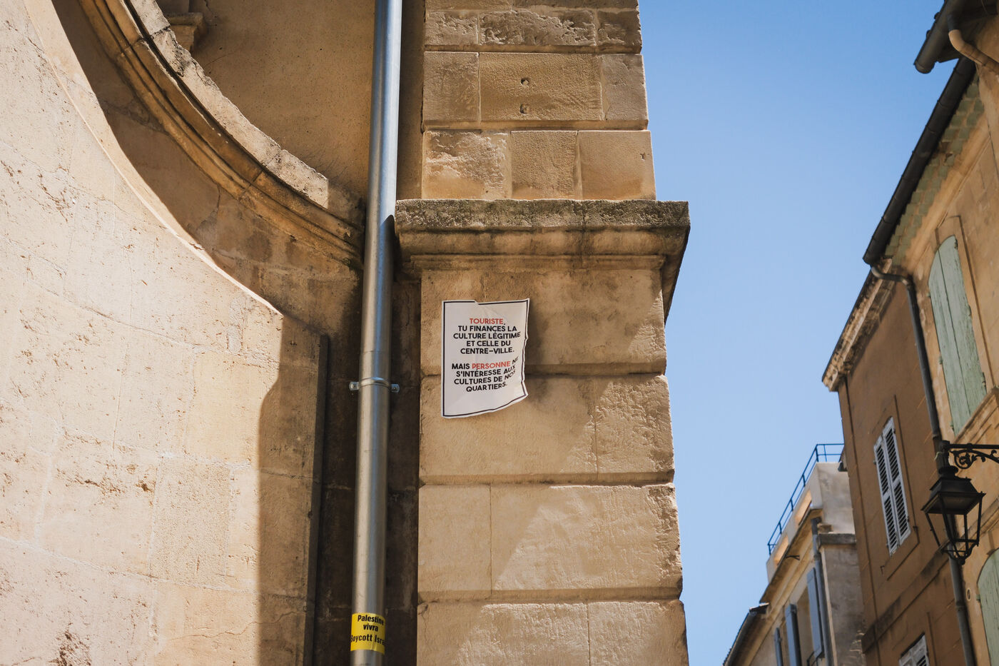 Un mouvement de contestation se dresse contre la gentrification du centre ville de Arles et les airbnb qui augmentent les loyers et contraignent les arlesiens a quitter le centre. Des affiches ont fait leur apparition au coeur de la ville, notamment au sein du quartier de La Roquettte, pris d'assaut par les touristes.