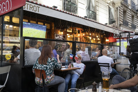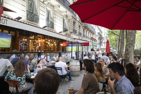 Illustrations in some pictures of the atmosphere that reigned in the streets of the capital for this first match of the French soccer team for Euro 2020. Here on the terrace full of a bar, which retransmitted the match on two screens, in Paris, June 15, 2021.