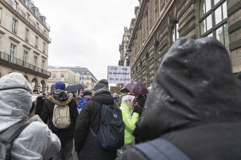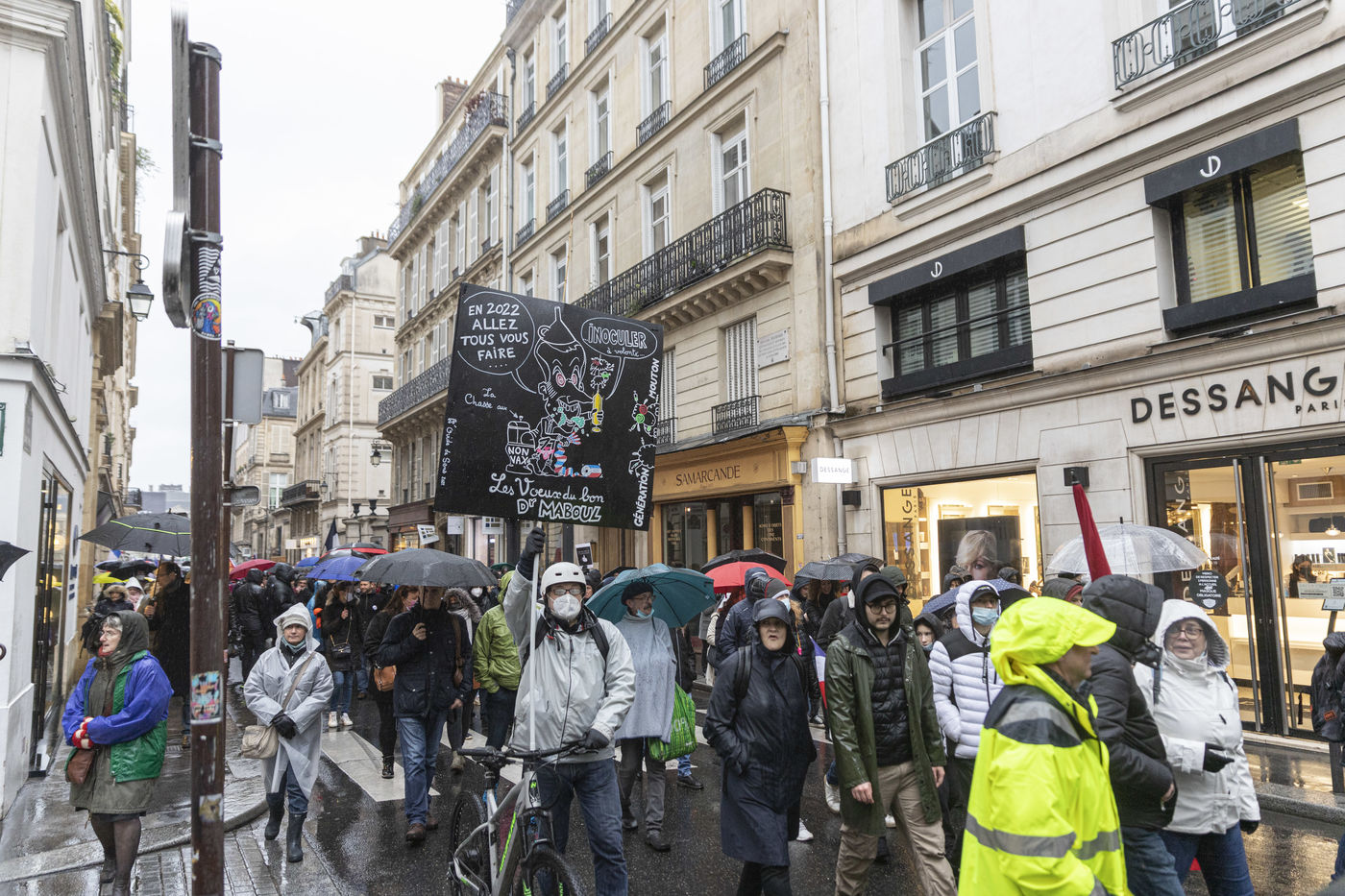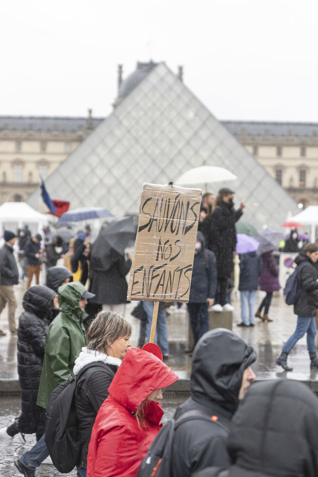 Organized by Florian Phillipot and his political party: Les Patriotes, tens of thousands of people marched in the pouring rain from the Place du Palais Royal to the Place Vauban, against the health pass and against the forthcoming introduction of the vaccine pass, in Paris, Saturday, January 8, 2022.