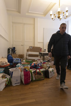 This room will also be used as a depository to gather and centralize all the donations received throughout France. Because today the truck sent by the diaspora is a little bigger than usual. Indeed, it is a twenty-four tons truck that is waiting for them on the outskirts of the Parisian ring road because it is too big to enter the city. For nearly two hours, the thirty or so young people present loaded the truck, box by box, forming a human chain. So many donations have been pouring in over the last few days that some of them will have trouble fitting into the huge trailer. Mikhaylo even had to refuse two 18m3 vans that were still to arrive from the province. But it is only a postponement for a future departure.
