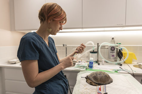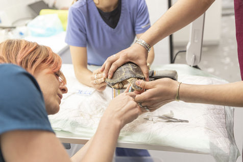 Malgré un cursus déjà long, les vétérinaires ont dû évoluer et se spécialiser davantage dans les animaux à soigner pendant leur carrière. Sur plusieurs semaines j'ai eu la chance de pouvoir suivre la vétérinaire Mélanie Coquelle, spécialiste des NACs, auparavant vétérinaire « itinérante » elle allait de clinique en clinique à travers l'Île-de-France pour apporter son expertise sur ces nouveaux compagnons. Mais avec l'augmentation du nombre de propriétaires en quelques années, Mélanie à pris la décision de se sédentariser et de prendre ses quartiers dans une toute nouvelle clinique au coeur de Paris, où un espace NAC a été aménagé spécialement pour elle. C'est donc maintenant les propriétaires qui font parfois des dizaines de kilomètres pour que leur animal passe entre les mains de la vétérinaire et de son équipe.